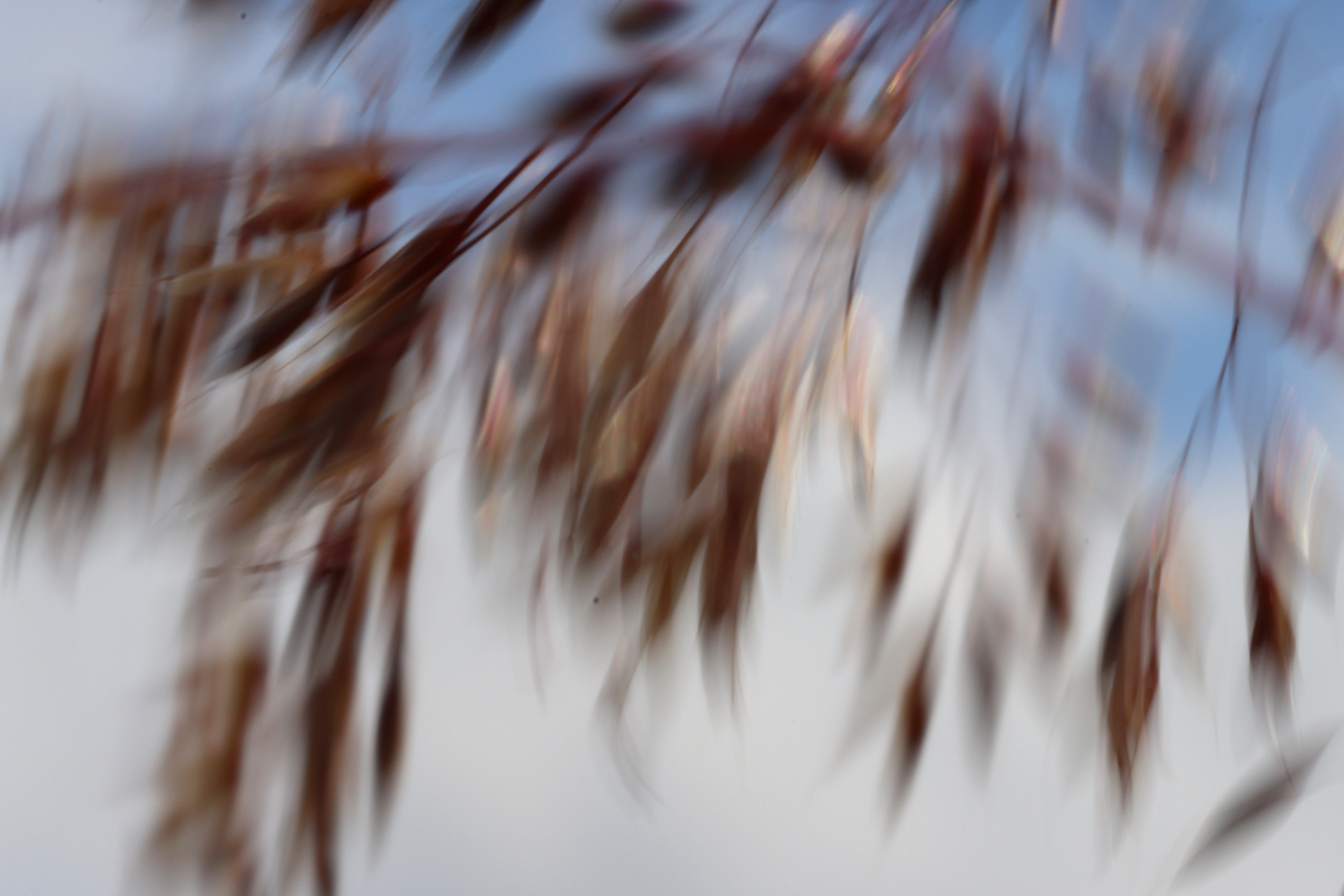 Gräs är ett flyktigt fotoobjekt, rör sig för minsta vindpust. Det har sin förklaring, när det är dags för fröna att spridas. Ibland kan det då vara skönt att bara ge efter och låta gräset leva sitt vilda liv i sökaren. Rörelsen i bilden återger då de lätta, i bland smått turbulenta, rörelser som luften åstadkommer, inte alltid som vi tror eller vill att det skall vara – men så spännande att uppleva.
