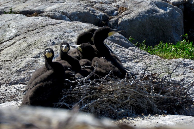 Den vanliga storskarven på västkusten ökar också i population. Nedan trivs den utomordentligt bra på en av de öar som skyddats sen tidigare. Nu har den trängt undan ejder, trut och vadarfåglar från deras naturliga häckningsplats. Storskarven är mycket glupsk. Har själv sett den ta ål, stor havsöring, plattfisk, simpa och braxen. Men kommer den åt så slinker fågelungar också ner.