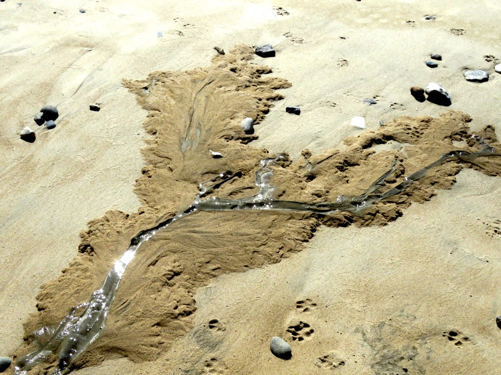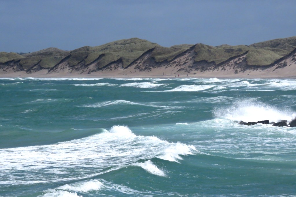 The inherent power of water is never as clear as when you are on a shallow sandy beach, as here July 2017 in Thy National Park in Denmark. The waves roll in without stopping and build up as they approach the seabed. Inexorably, they take back millennia of stored sand and rock. Everything becomes visible to us who walk along this exposed west coast.