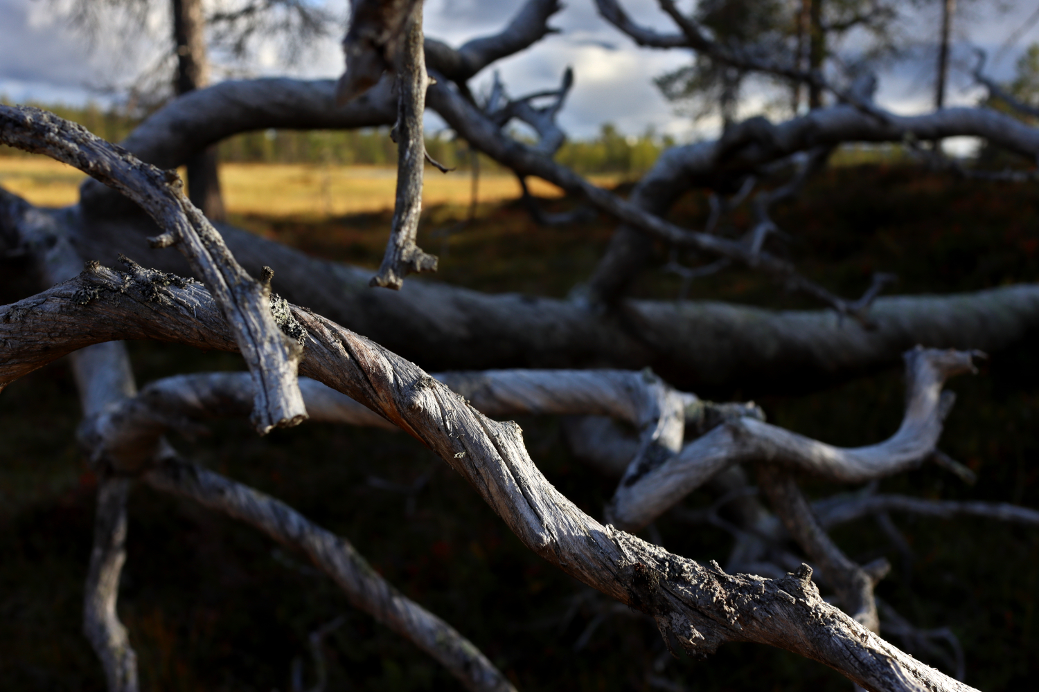Martallar är lite av ett signum för de flesta myrar i Rogen, men även i den fjällnära skogen som skall visas i kommande inlägg från Rogen. På myrarna växer martallen extremt långsamt och blir oftast dvärgartat liten. En sådan förkrympt martall med en diameter på endast 5 cm kan vara över 50 år. Namnet tros komma från att man trodde tallarna reds av det övernaturliga väsen som kallades maran, blev förtrollade och växte långsamt. Jämför vårt ord mardröm (eng. nightmare).