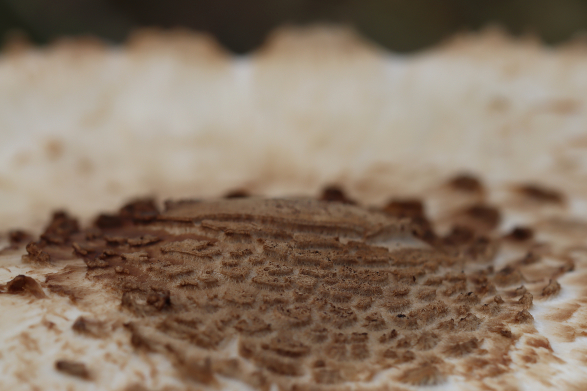Med mina begränsade kunskaper om svampar törs jag gissa på att det är en stolt fjällskivling (Macrolepiota proceras) som fascinerade mig en gråmulen dag, Anki får rätta mig annars. Det mest uppseendeväckande var växtplatsen. Tre stolta hattar på en stenig havsstrand bland vissna plantor av trift (Armeria maritima).