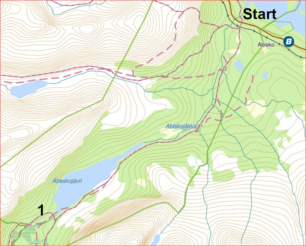 Satellitkarta över hela vandringen med dess delmål, dag 1-20, från Abisko i norr till Kvikkjokk i söder, totalt ca 30 mil, hittar ni på första inlägget här.