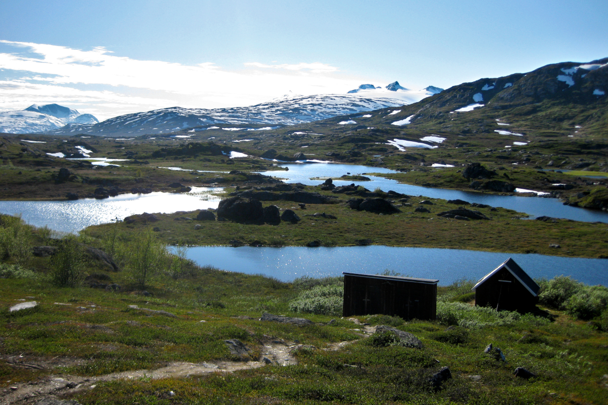 När jag hade lämnat björkskogen efter mig öppnade sig fjällhedarna, med dvärgbjörk och krypvide, mot de norska fjällen i väster. Stigen blev tydlig där den ringlade sig fram mot den efterlängtade STF-stugan. Men ett sista vad skulle det bli ändå…..