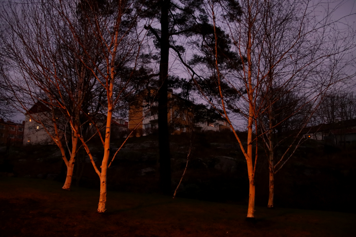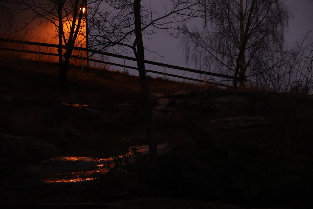 De har ännu inte lärt sig att kissa på WC, våra två hundar, även om de är smarta. Däremot stannar de instinktivt när jag lyfter kameran under morgonrundan. Som regel i mörker vintertid, men den här dagen fanns det en strimma hopp i soluppgången. Ofta tar vi en sväng runt sjön mitt i Strömstad, samtidigt som staden vaknar till och ljusen tänds i fönstren. Fördelen med att fota med hundar på promenad är att man måste ut och att de stannar rätt ofta så man kan lyfta blicken och se det man missar var dag annars.