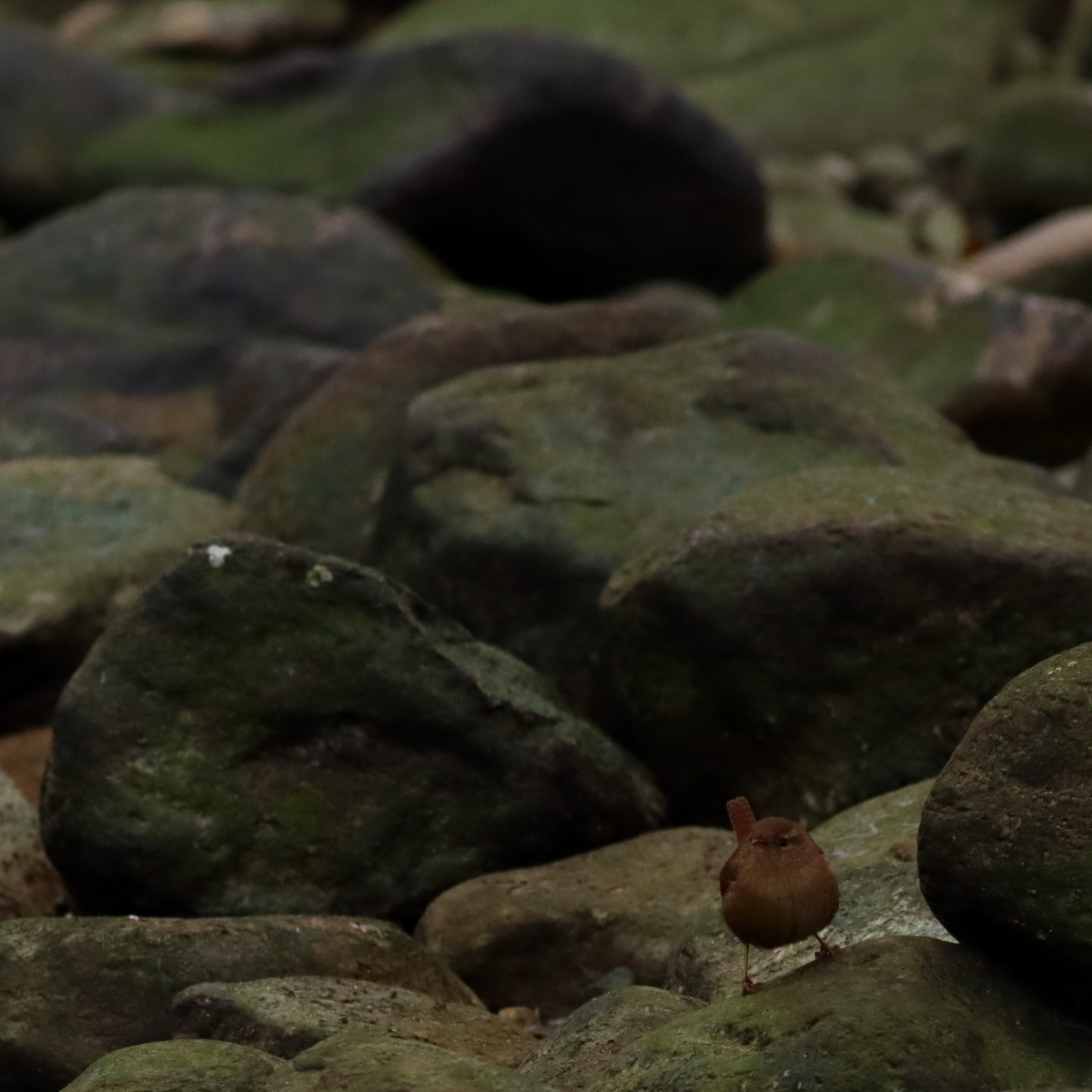 Vår minsta övervintrare, som hittar föda överallt där andra inte kommer åt. I detta fall mellan stenar, vid lågvatten längs en havsstrand. Syns sällan när den letar efter nåt ätbart, men lock och varningslätet hörs oftast lågmält. Sången kan man ibland höra även vintertid.