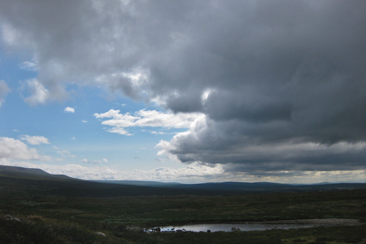 ”Skogen gick över i rished med enstaka parkplacerade björkar. Den våta doften av kråkbär slog emot mig. Högfjället var som en enda gigantisk tältplats, genomskuren från söder till norr av Avtsusjjåhkå. Älven meandrade sig djupt ner i en gammal ravin, säkert en gigantisk glaciärflod en gång i tiden. Stanna vid vindskyddet halvvägs.”