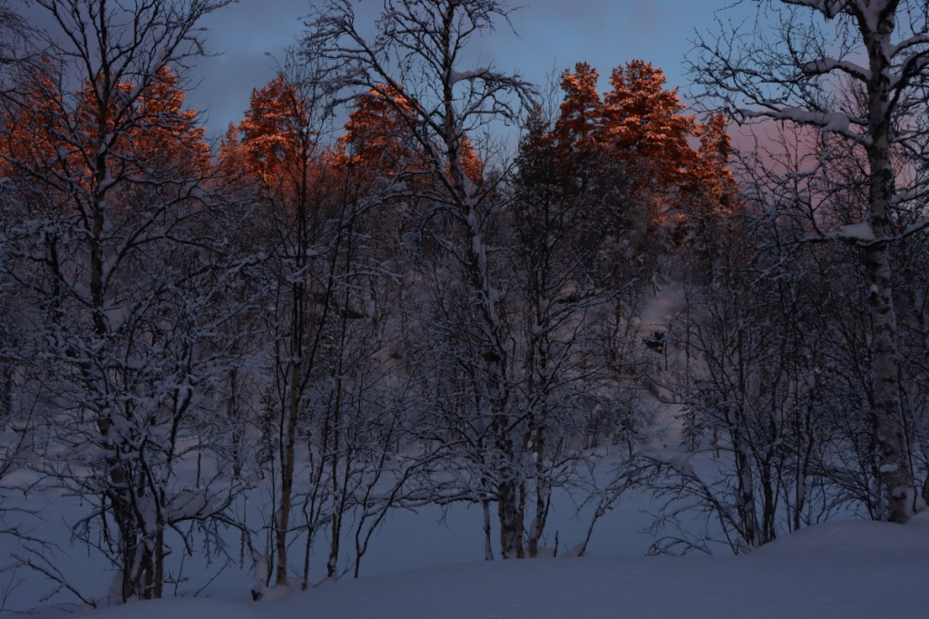 Vissa har redan fått nog av snö och kyla, men min norrlandssjäl pockar på uppmärksamhet. Det skall vara riktig snö, klart väder och kyla som knastrar under hundtassar till och med. Något kortare dagar i Härjedalen och Rogens naturreservat, men månljuset och snön hjälper till att finna vägen. Bara -16 grader C denna morgon när hundarna måste ut. Ett trolskt morgonljus som hänger kvar i kylan. Båtarna ligger i ide i sina båthus vid sjön. Doften av kall snö och tystnaden som bara bryts av enstaka morgonpigga talltitor och dalripor som lyfter yrvakna ur sina snölegor.