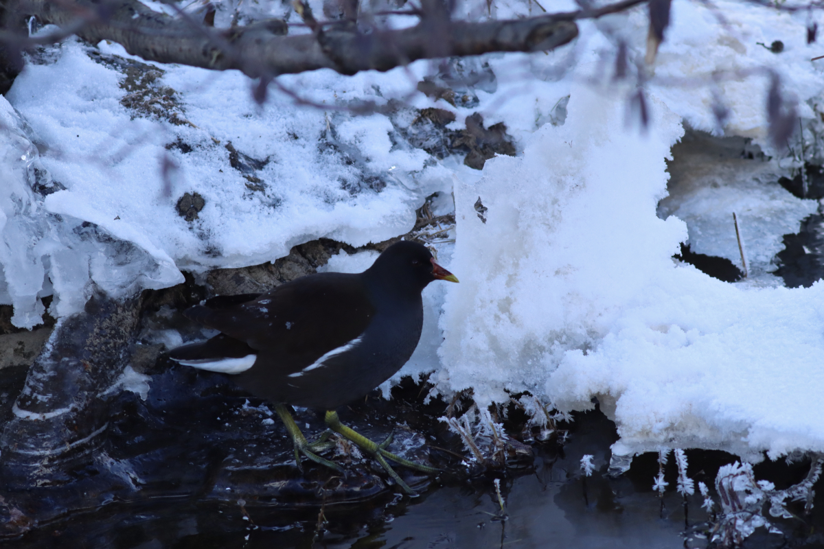 Om rördromen har stora fötter så har rörhönan väldigt stora fötter i förhållande till sin egen storlek. De är inte vanliga, men minst två par har häckat de senaste somrarna i Strömstad. Populationen i Sverige är dock 10 ggr större än rördromens. Några försöker övervintra varje vinter och dyker upp likt rördromen när kylan blir för bister och isläggningen breder ut sig. Den har det tufft i konkurrensen med de övriga övervintrarna i ån om utbudet av föda under vattnet. Trots att vattnet fryser på ryggen verkar den relativt obekymrad av kylan.