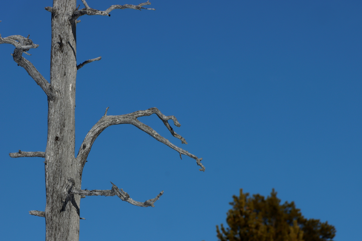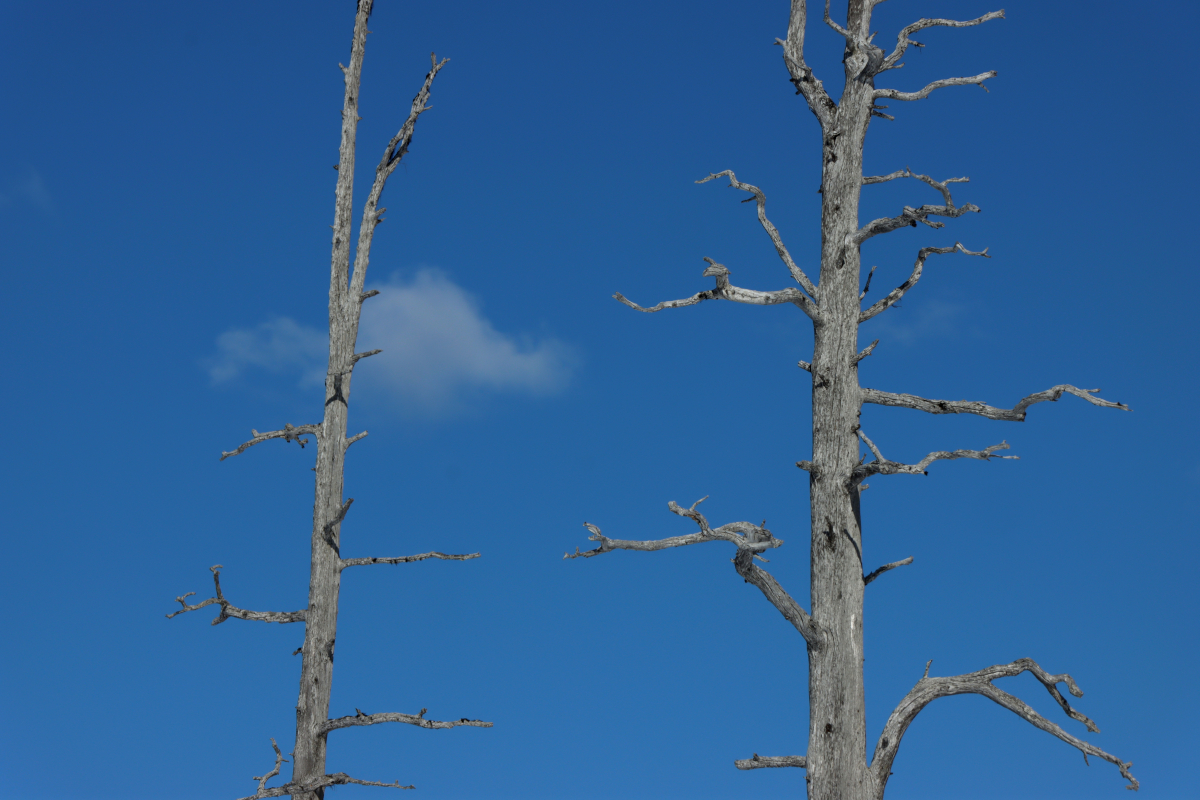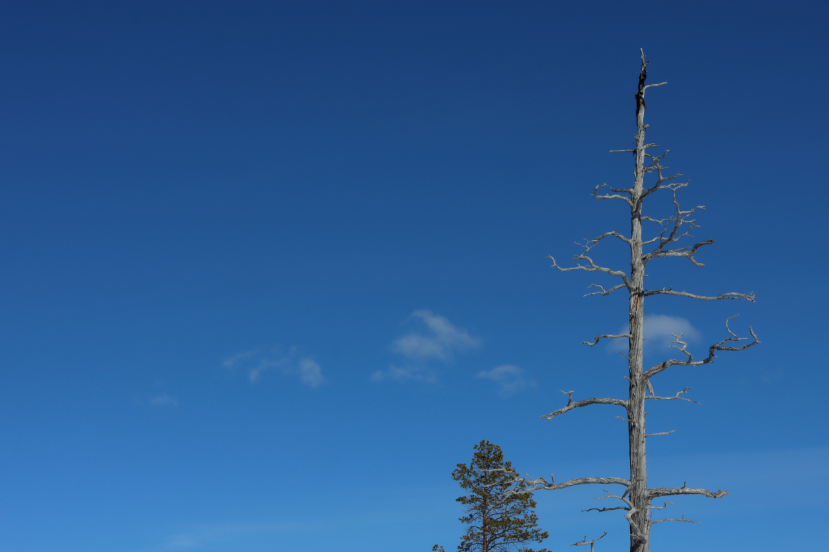 Torrakan ser förstenad ut, nästan frystorkad, skör utvändigt men samtidigt hård på insidan. På ett utmanande och trotsigt sätt talar den om för de som passerar att jag minsann har klarat av denna miljö utan att behöva flytta på mig. Viker inte ner sig i första taget. Ser naken ut nu men har aldrig behövt ta på sig extrakläder och söka skydd när stormbyarna driver över myrstråket. Ungdomarna som börjat resa på sig i skuggan av den gamle verkar söka klokskap i dess närhet, en tyst kommunikation under markytan. Generöst öppnar torrakan sin famn till nya invånare, svarta eller skarpt gula lavar, oavsett färg är de alla välkomna till nästa steg i livets rotation.
