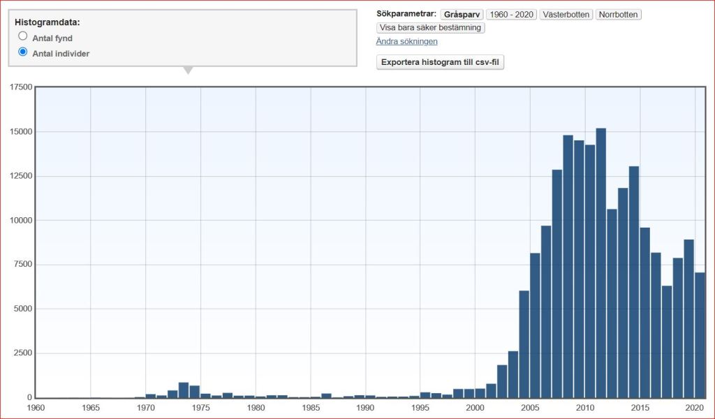 I olika europeiska storstäder som London, Paris, Warszawa, Hamburg och München har en mycket stark tillbakagång observerats under de senaste åren. I stadsdelen St. Georg i Hamburg minskade antalet gråsparvar mellan 1983 och 1987 från 490 till 80 fåglar per kvadratkilometer.