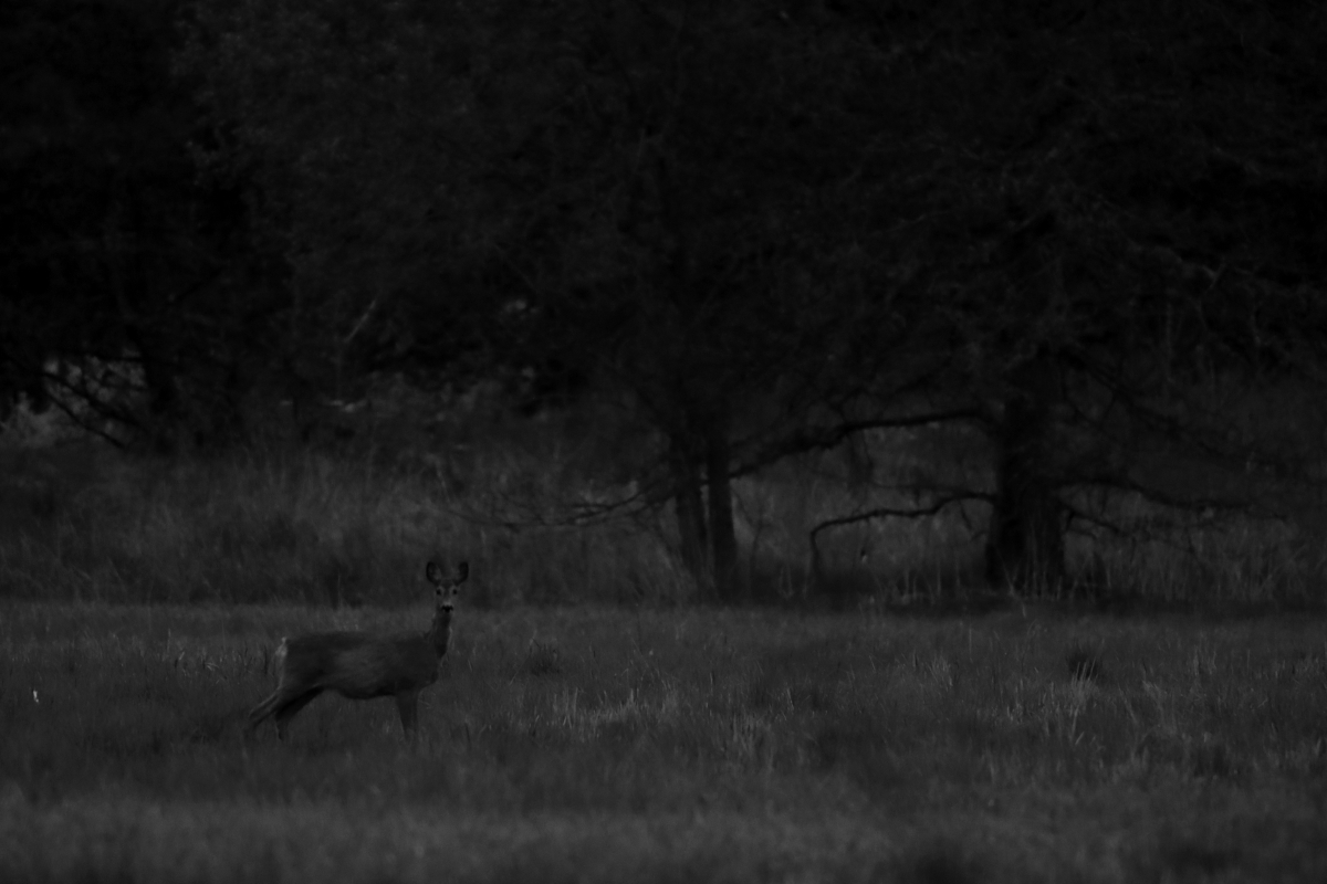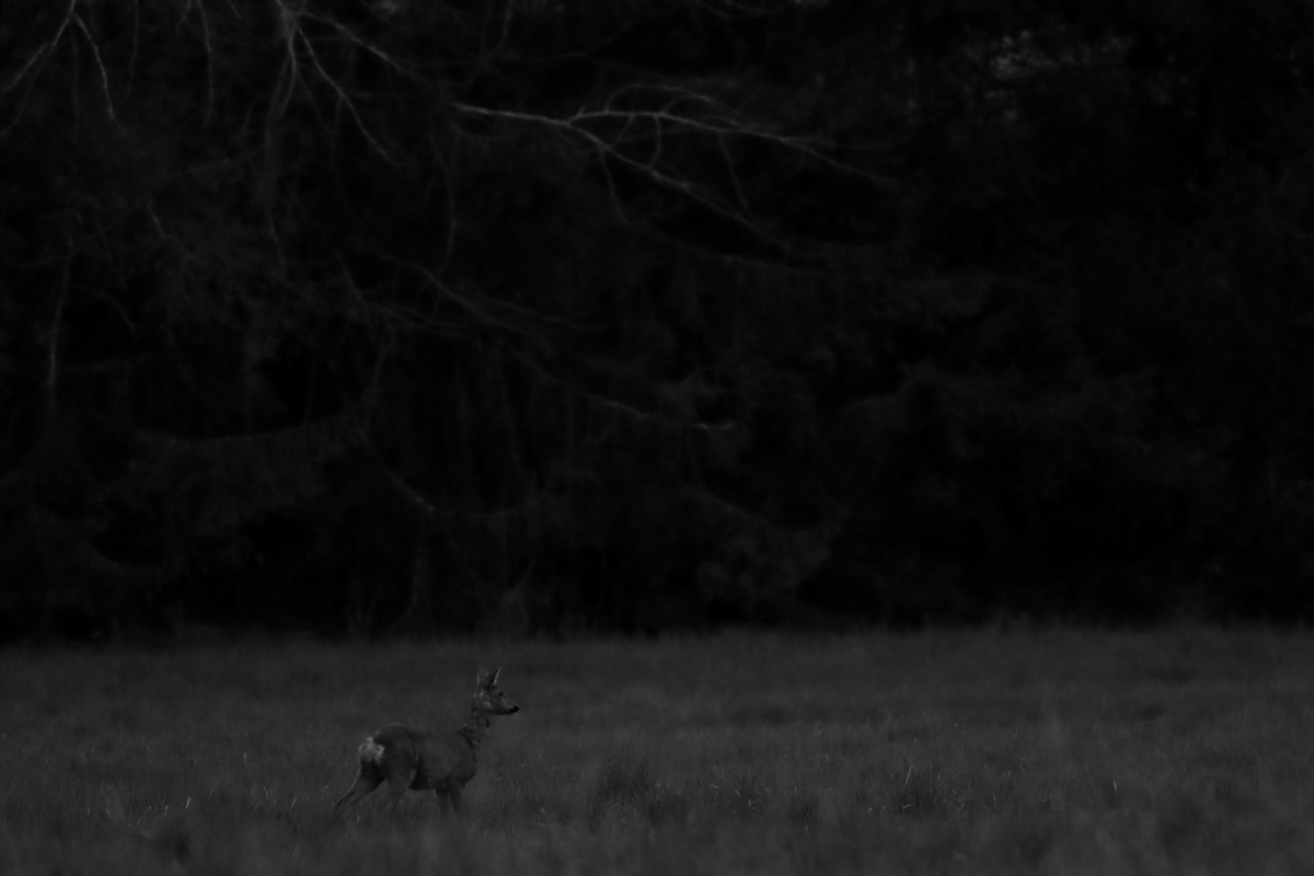 Hade nog hellre suttit i någon skogskant och låtit rådjuren komma fram till mig men är samtidigt klar över att det säkert hade varit ett större intrång på deras betesmark. Vittringen av människa hade antagligen fått henne att tveka en gång extra. Nu avlägsnade hon sig istället sakta och försiktigt in mot den skyddande granskogen bakom. Känns lite som att vi båda blev en erfarenhet rikare efter detta stillsamma kvällsmöte.