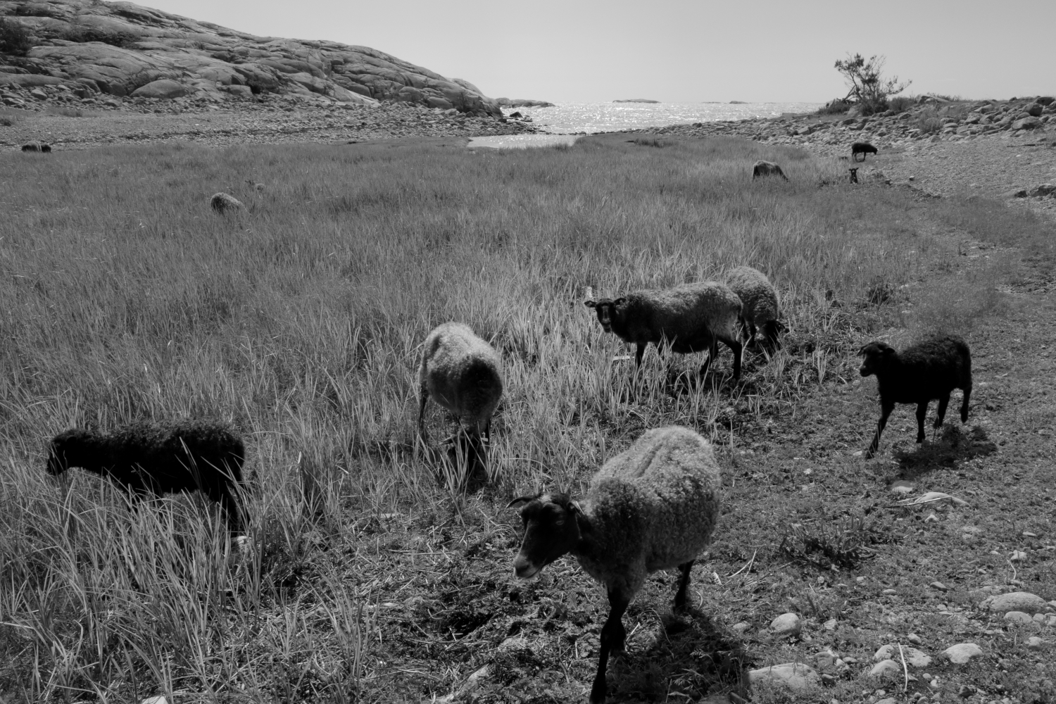Halvön erbjuder inte det läckraste sommarbetet men fåren verkar trivas i den totala friheten med skog, berg och strandäng. Lite extra kraftfoder är den enda lön de får för sin idoga strävan att hålla efter en stor yta från igenväxning och skapa förutsättningar för späda fanerogamer. Endast strandkvannen i det värsta stenskravlet klarar sig. Att de trivs med landskapet och de tvåbenta besökarna råder det inget tvivel om. Enda problemet är bara att de inte vill därifrån på senhösten.