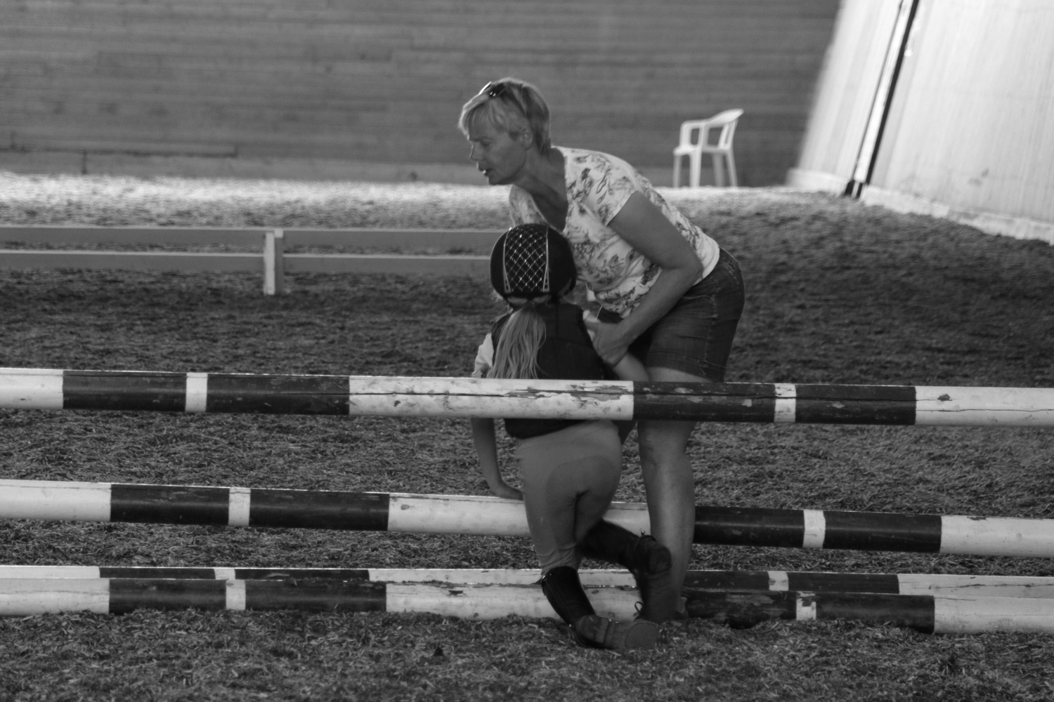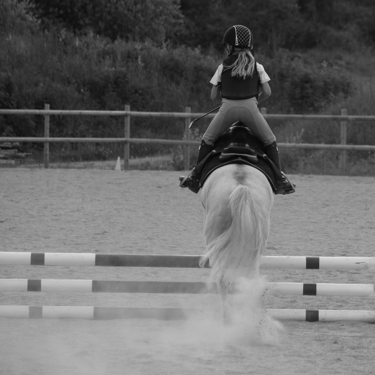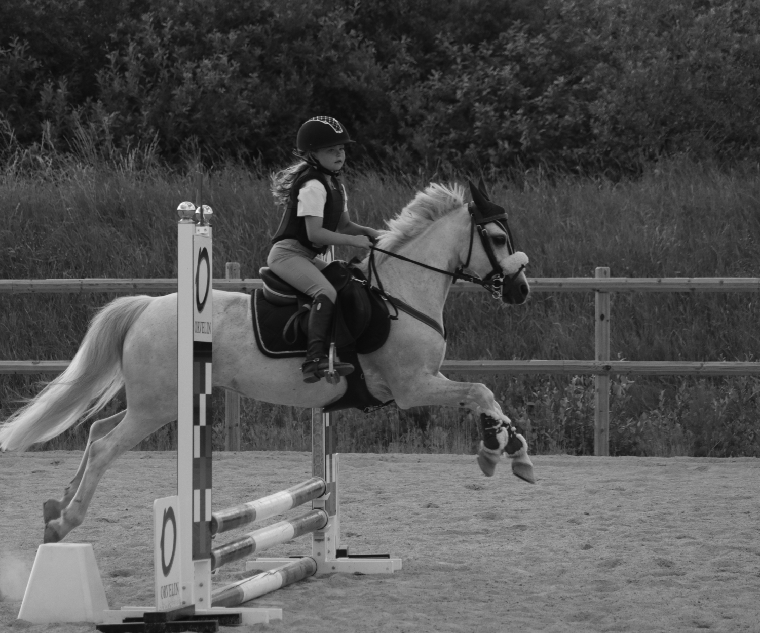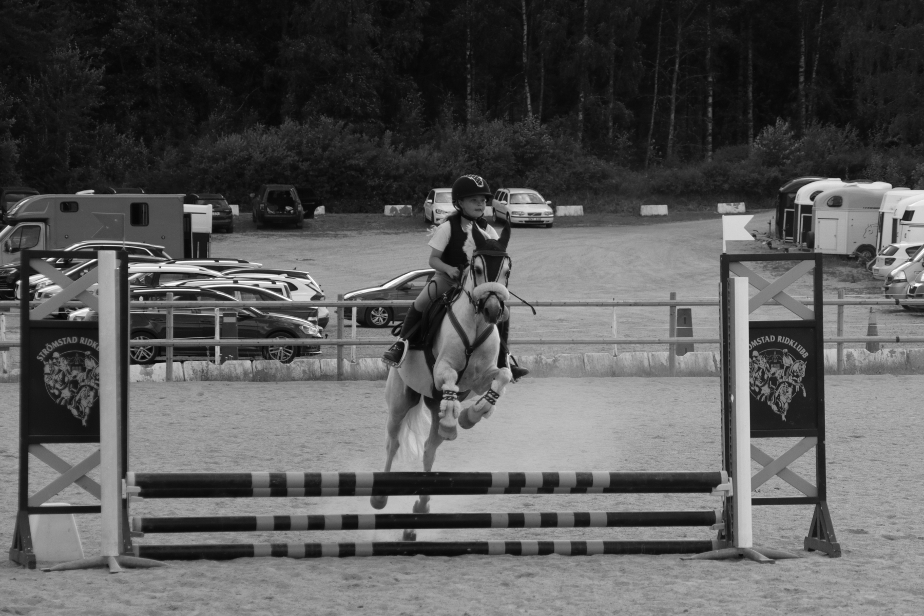 Nu när familjens tredje generation hoppryttare är i farten blir det inte lika ofta man behövs på stadens ridklubb. Följde min dotters 7-åring på en av många mindre lokala tävlingar en kväll. Ville också försöka hitta lite av känslan i denna hoppsport och självklart fånga ett av våra barnbarn i aktion. Valet föll på monokroma bilder för att fokusera på samspelet mellan häst/ryttare och barn/förälder/morförälder.
