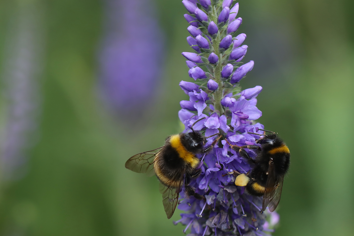 Dagfjärilarna måste hela tiden samsas med andra pollinatörer, där humlorna är de mest burdusa och tvekar inte att knuffa undan en mycket större fjäril.