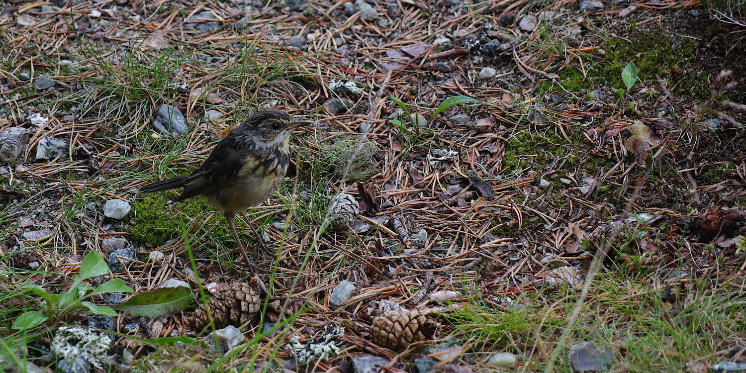 En lite småregnig dag vid stugan i Rogen fick jag en oväntat besök. Satt och väntade på att fisken i röken skulle bli färdig när en mycket ung fågel dök upp bredvid mig på farstutrappan.
