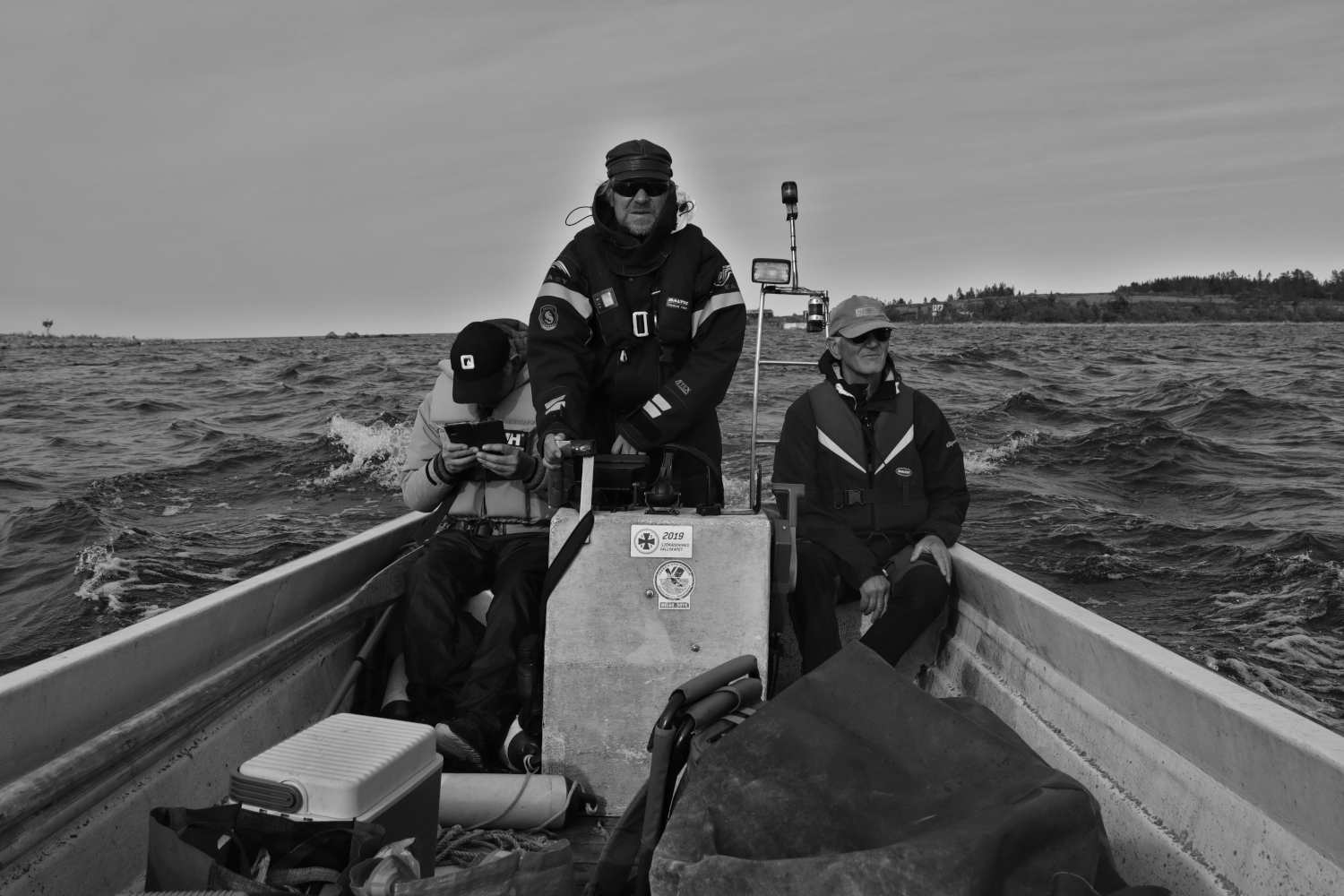 Det får bli lite svart-vita bilder till att börja med, det som man hade råd med på den tiden. Enda sättet att ta sig ut till ön är via en mindre öppen motorbåt, endast på beställning. Sjön kan vara hög så blöt blir man som regel. Inkvartering löste sig för vår del i den gamla fyrvaktarbostaden mitt på ön. Huset ägs av Umeå kommun men ses till av de flitiga fågelskådarna som besöker ön veckovis för ringmärkning vår och framförallt höst. Mer om det senare…..
