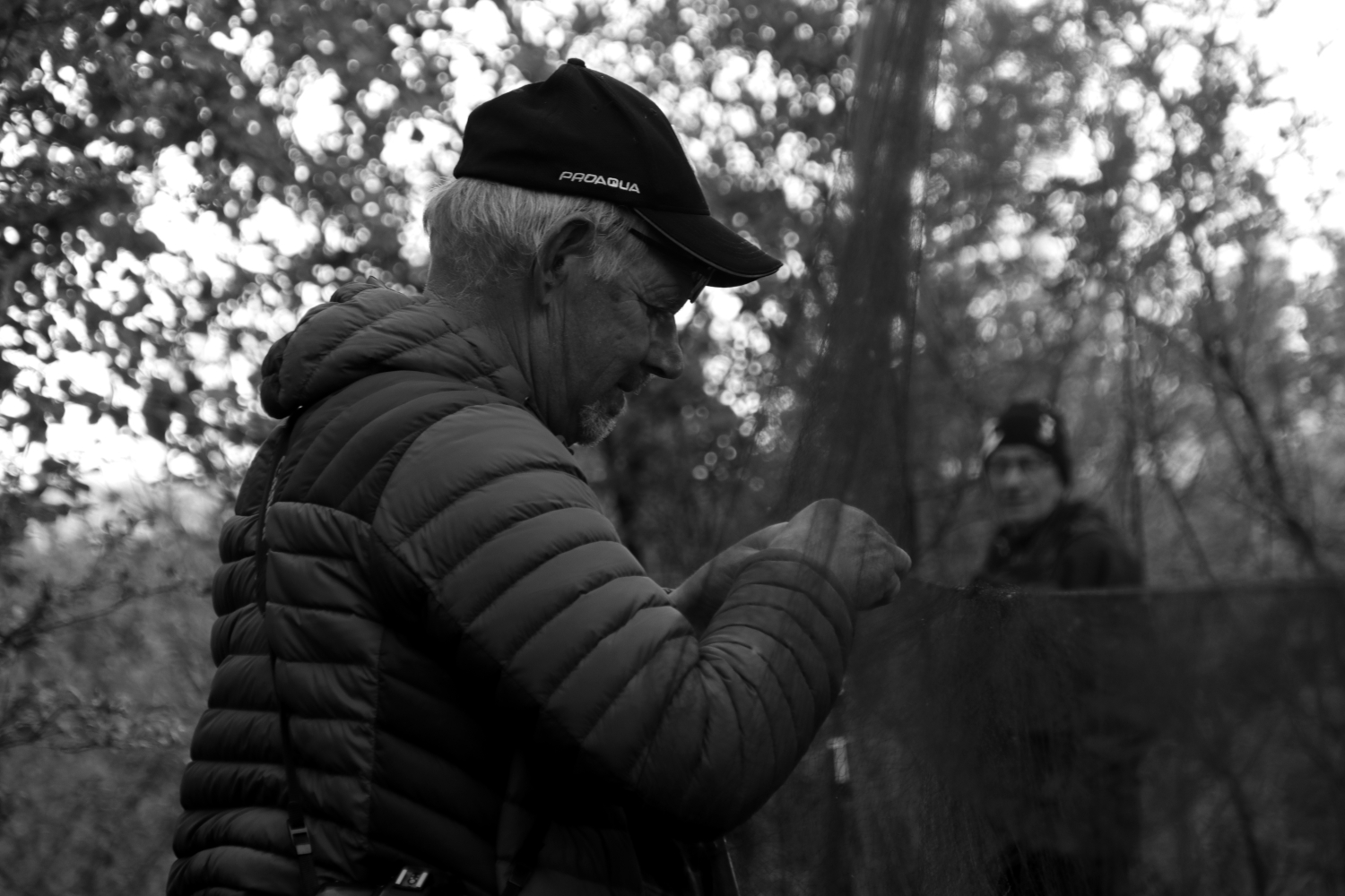 Lite tidig och snabb frukost innan det är dags att vittja näten på morgonpigga flyttfåglar. Näten kontrolleras sedan med 30-40 minuters mellanrum, vilket oftast innebär en heltidssyssla mellan klockan 5 och 11 på förmiddagen denna tid på året. Fåglarna placeras i olika fångsthållare för att hålla isär arter eller grupper. Lite tid att spana av omgivningarna finns även för de som ännu inte är skolade i att hantera fåglarna i nät.