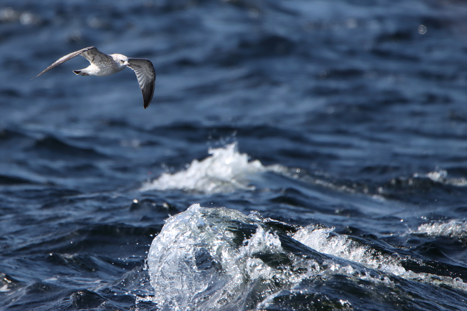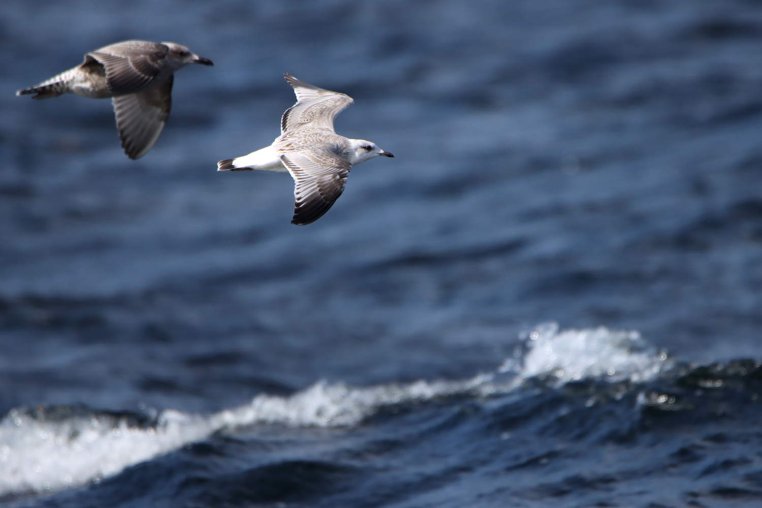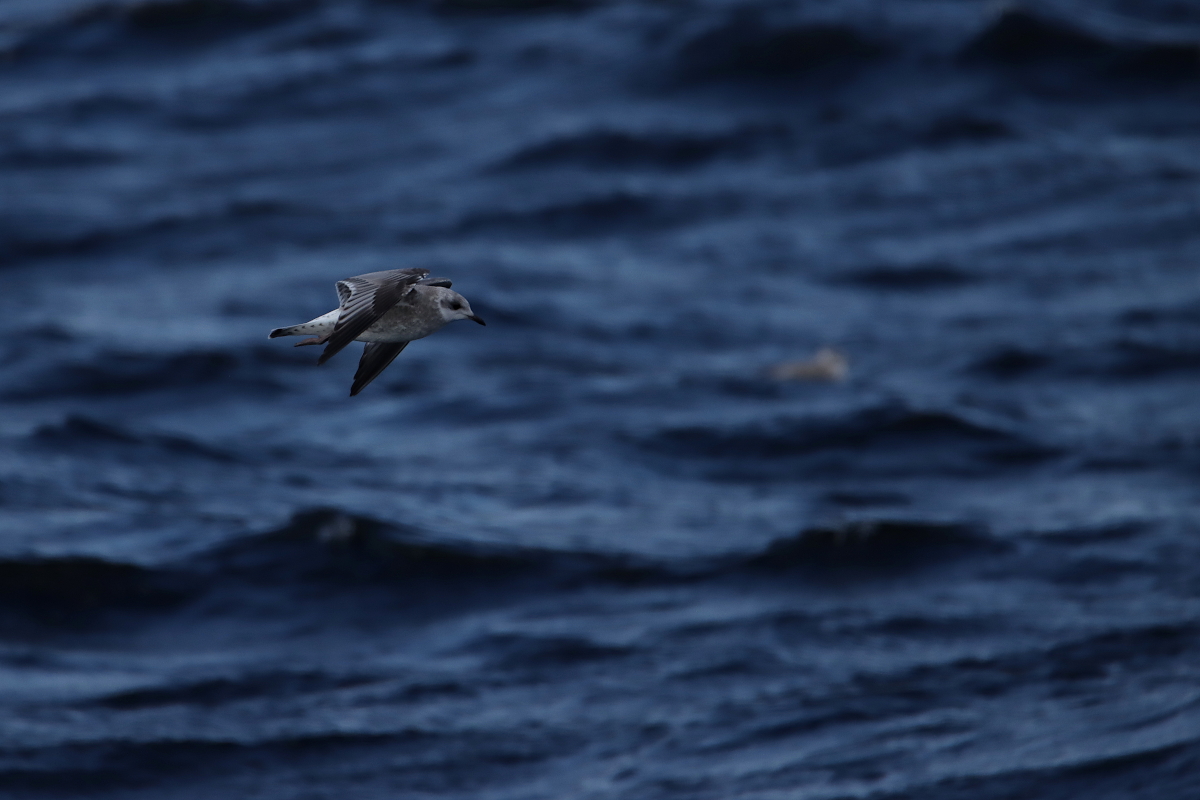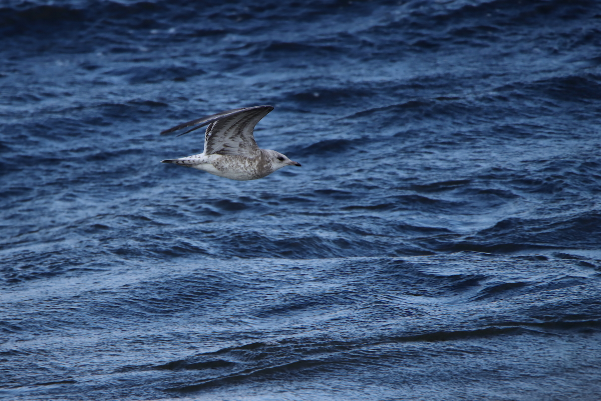 Andra måsfåglar hade inga som helst problem med vinden, även om kastbyarna ibland tvingade dem till snabba undanmanövrar för att slippa gå ner på vattnet mellan dyningarna. De flesta föredrog att gå norrut mot vinden. De spanade konstant ner mot de skummande brotten längs stranden, troligtvis i hopp om att något ätbart skulle komma upp till ytan. Bara ett fåtal av dem verkade lyckas med intensionen, vad jag kunde se.