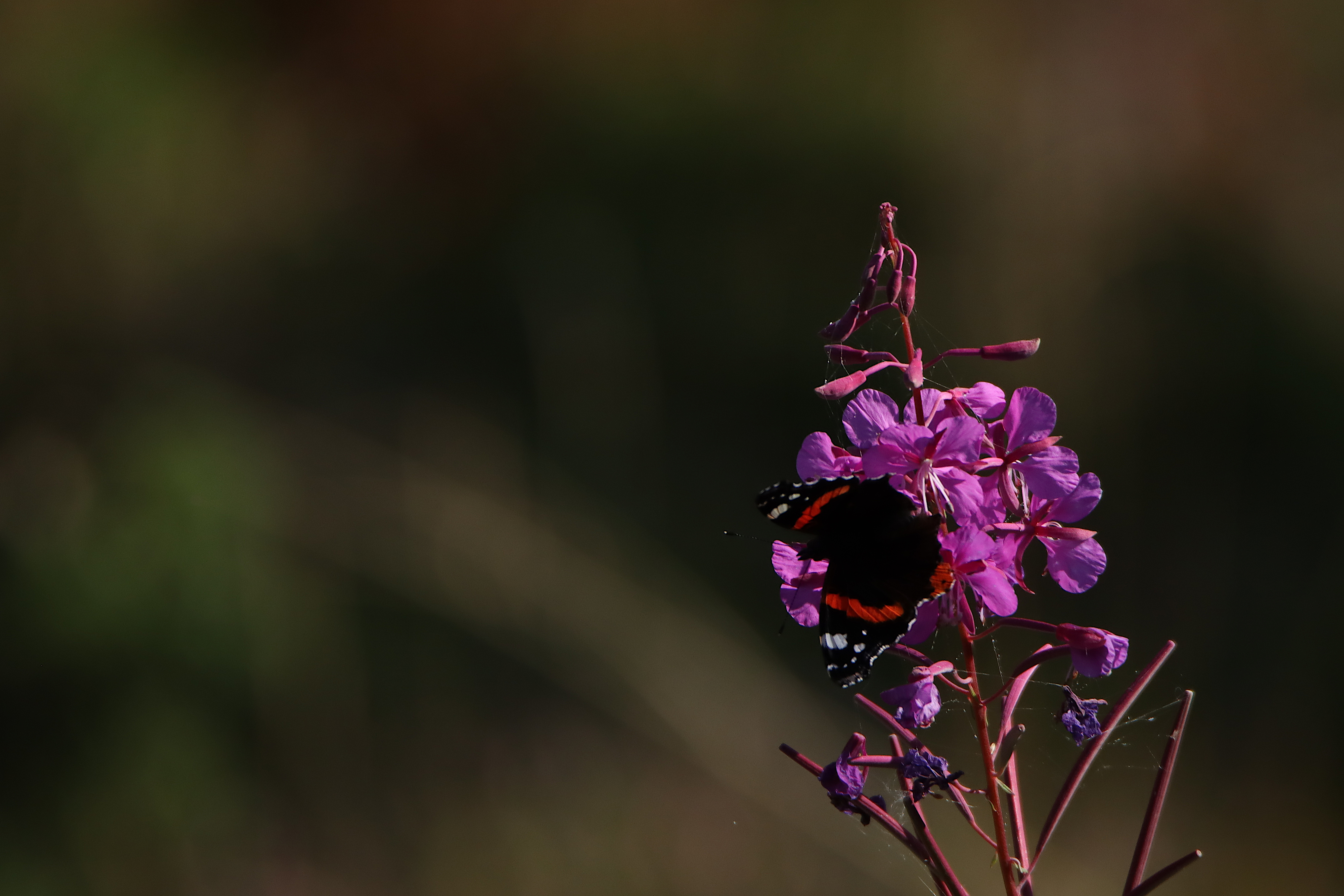 En fullkomlig invasion pågick på ön under de dagarna vi vistades där. Överallt där det fanns lä för nordanvinden de första dagarna så kröp Amiralfjärilarna (Vanessa atalanta) samman i grupper. Spelade ingen roll om det var på sent blommande mjölkört i en grandunge eller på sten och al längs stränderna. Ja, även i grantopparna kunde man se dem. Det latinska namnet antyder säkert att de inte är rädda för att korsa havet när de söker sig norrut varje vår. Detta år har de kommit långt och i stor skara. Uppskattningsvis sågs det ca 500 exemplar på ön, i grupper upp emot 20-50 ex. Antagligen försöker de nu åter ta sig söderut.