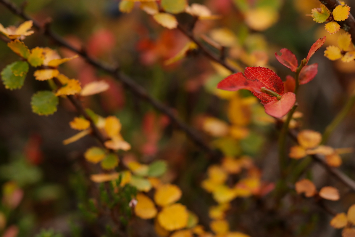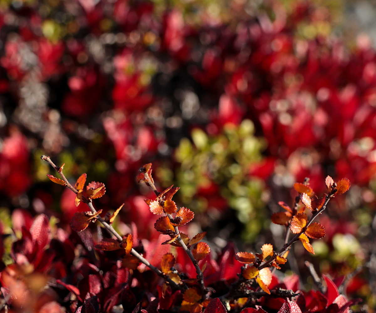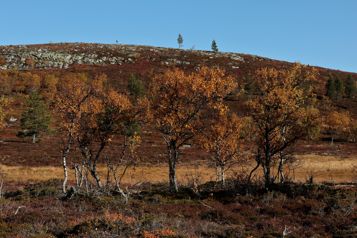 Ett sånt överflöd av färg, att bara sluka med alla sinnen. En sista pyroteknisk akt i årets föreställning av in natura. Övermäktigt som pukor och trumpeter i symfonins avslutande crescendo. Inga applåder ekar mellan träden, bara ett svagt viskande mellan tall och fjällbjörk. Gemenskapen beundrad av de späda buskarna av dvärgbjörk, rödoranga av upphetsning att få vara en liten del av detta rytmiska förlopp. Pånyttfödelsens anlag trycker på och skjuter ut klorofyllförlorarna för att ge utrymme åt grenspetsarnas övervintrare.