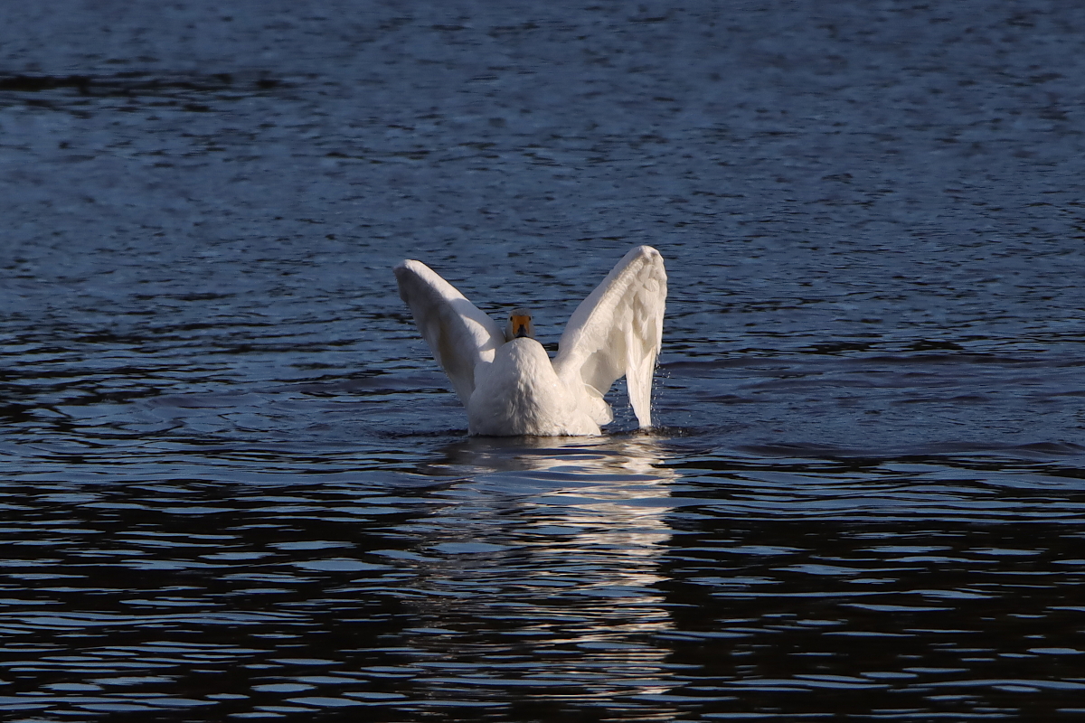 Så roligt att sitta och iaktta och föreviga den vackra vattengymnastiken som svanen utför. Läcker svanserie.