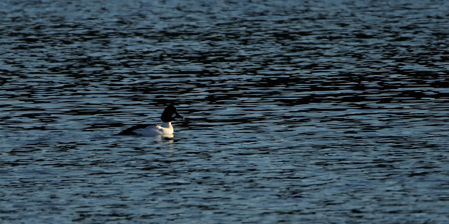 Efter ett par timmar simmade den inåt vassen, bara för att kunna vända upp mot den svaga vinden och snart hade den luft under vingarna och gled ljudlöst över vattenytan. Förtrollningen var bruten och vattnet tystnade igen. Endast några knipor låg kvar i det sista av solen.