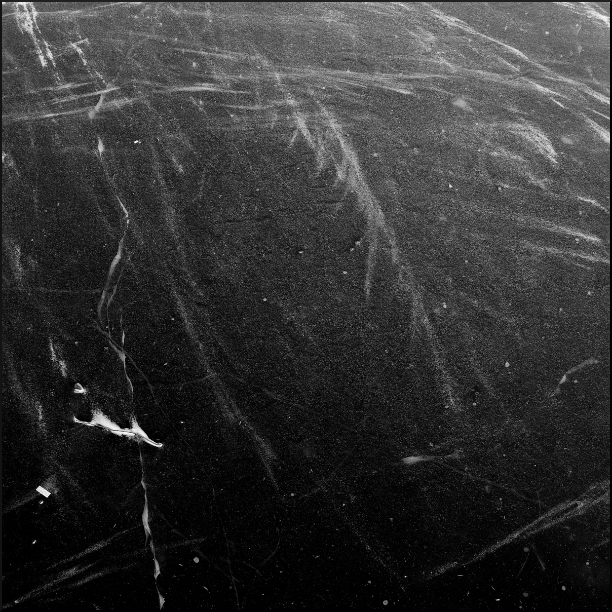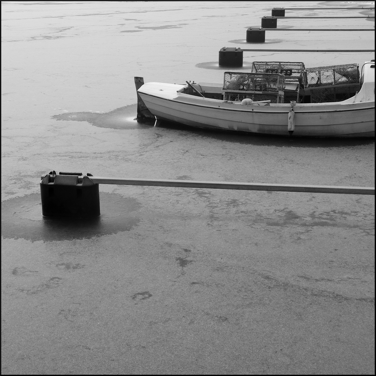 1. Den minimalistiska bilden med stenarna och fördjupningen i isen kan jag titta länge på, så isande vacker. Och den kvarlämnade båten i den tomma raden, och shoppingvagnen i fjärran och stråken i den svarta isen. För att inte glömma den ensamma måsen på den pastellgyllene isen. Melankolisk skönhet.