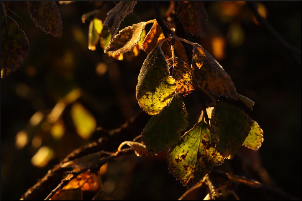Vi som bara strövar omkring i detta osannolika överflöd av färger kan bara inte låta bli. Att uppleva naturens sista ansträngning som en gåva till oss, när det egentligen bara handlar om kemi och överlevnad. Vi och alla andra däggdjur har missat nåt stort här. Att fira vår sista vila med ett överdåd av färg, glädjespridande istället för det eviga mörkret klätt i svart.