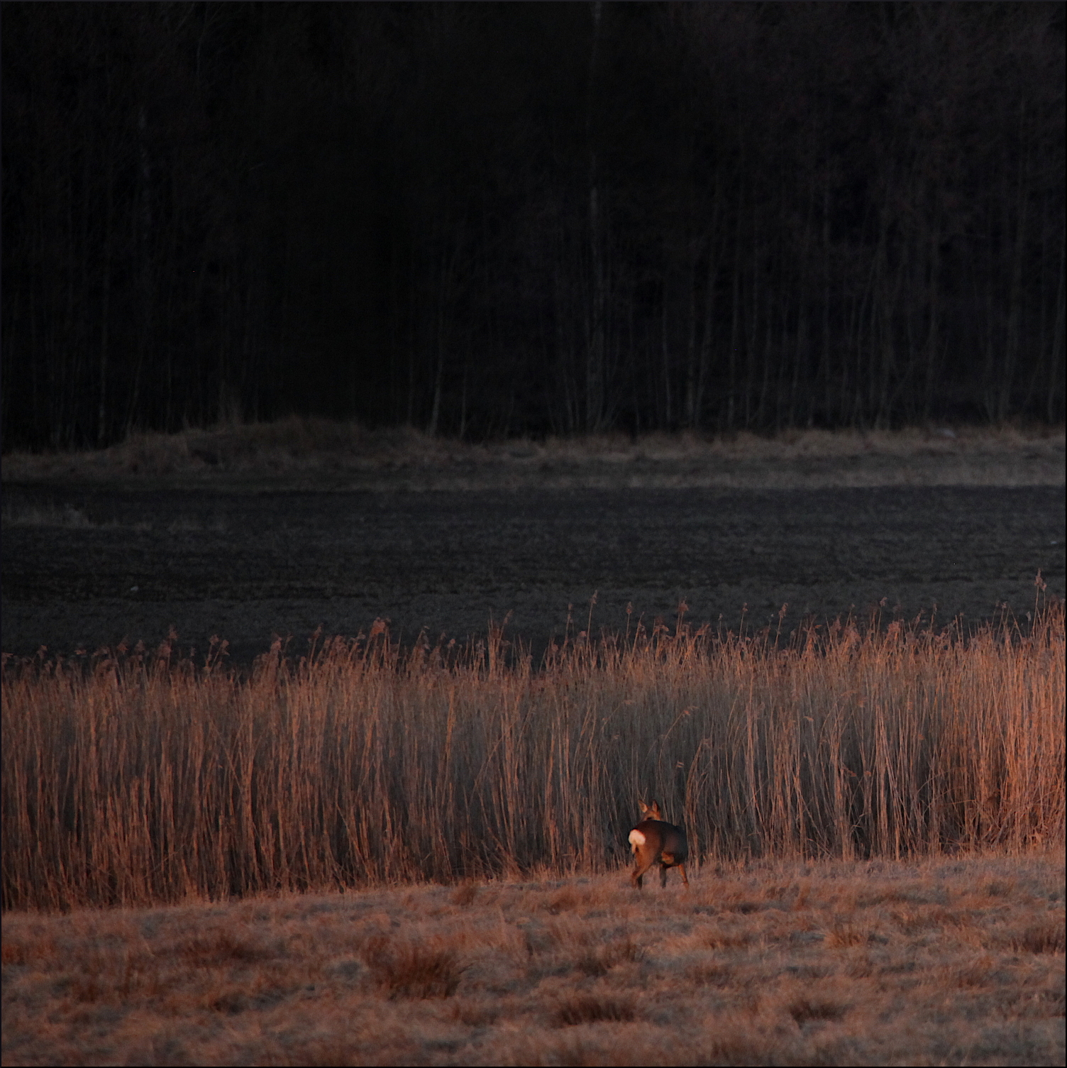Äntligen, tycks de uttrycka, genom att invadera ängar och oplöjda åkrar. Fortfarande lite försiktiga i kanterna av skog eller nära hög fjolårsvass som skydd. Men de fräscha saftiga skotten av grönt gräs måste vara efterlängtat efter vinterna lite magra kost. De samlas i allt större grupper, oftast en patriark med ståtliga horn i centrum som håller koll på sitt harem av honor. Grågässen som är mitt i häckningsbestyren är inte alltid lika förtjusta i de nyanlända. Ljusa kvällar vid mörkrets inbrott är rådjurens tid vilket ställer betraktaren och fotografen inför dilemmat med höga ISO-tal på kameran.