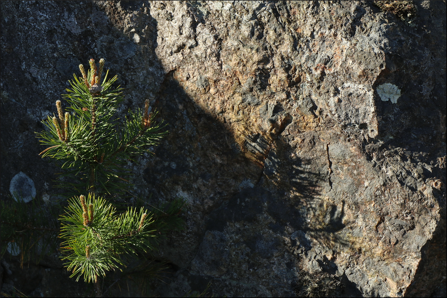 Oj, högst överambitiös rubrik, men det finns ett underliggande tankespår. När jag passerade berget på en av mina vanliga stadsrundor såg tallarna ut att försöka sträcka sig efter himlen och ta in det de behöver ur atmosfären. Berget har blivit deras egen hemort. De unga plantorna har en nästan mirakulös förmåga att finna skrevor eller bara små sprickar att etablera ett nytt liv i. Här och då kändes det väldigt tydligt att tallens enda mål var att överleva och skapa en så livskraftig population att framtiden blir säkrad. Meningen med dess liv blir då nedskalat till överlevnad och förökning.