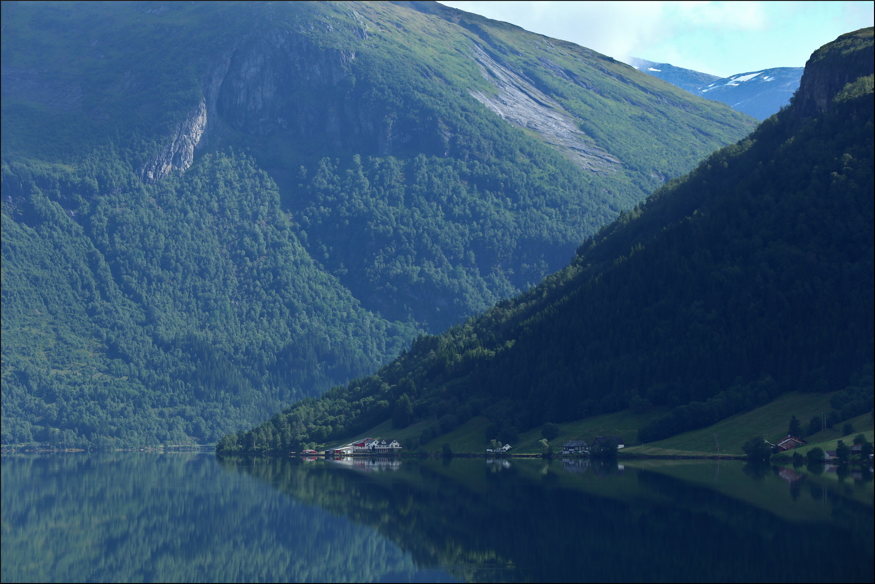 Den ligger kvar där den ligger, sedan jag första gången såg den år 2000. Vi bodde då, precis som i år, i det första huset längs Vikumvägen. Den lilla gården Nesheim ligger sist, där vägen tar slut längs med den en mil långa sjön Haukedalsvatnet. En gård som överlevt snöstormar, bergsskred och avfolkning. Ängsmarkerna som fortfrande slås lyser gröna och höet bärgas. Men detta år solkas minnet av gården. Den näst sista dagen på vår fiskevecka, passerade ambulansen i ilfart förbi vårt hus på den smala vägen och stannade inte förrän den nådde Nesheim. Även om vi inte känner de som bor på gården finns en känsla av obehag kvar när vi lämnade vår semesterort som är deras hemort och kanske livsverk.
