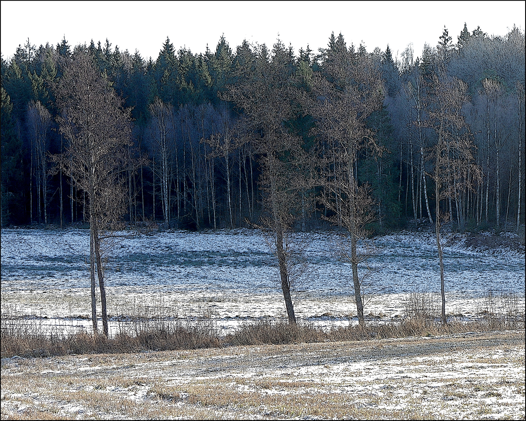Mixtrat lite för att få fram känslan, men vill framförallt förmedla ljuset som återspeglar ett tätt grenverk utan löv. Exponerat därför efter de mörkaste partierna i bakgrunden. Konstnärlig frihet utan ansvar…..