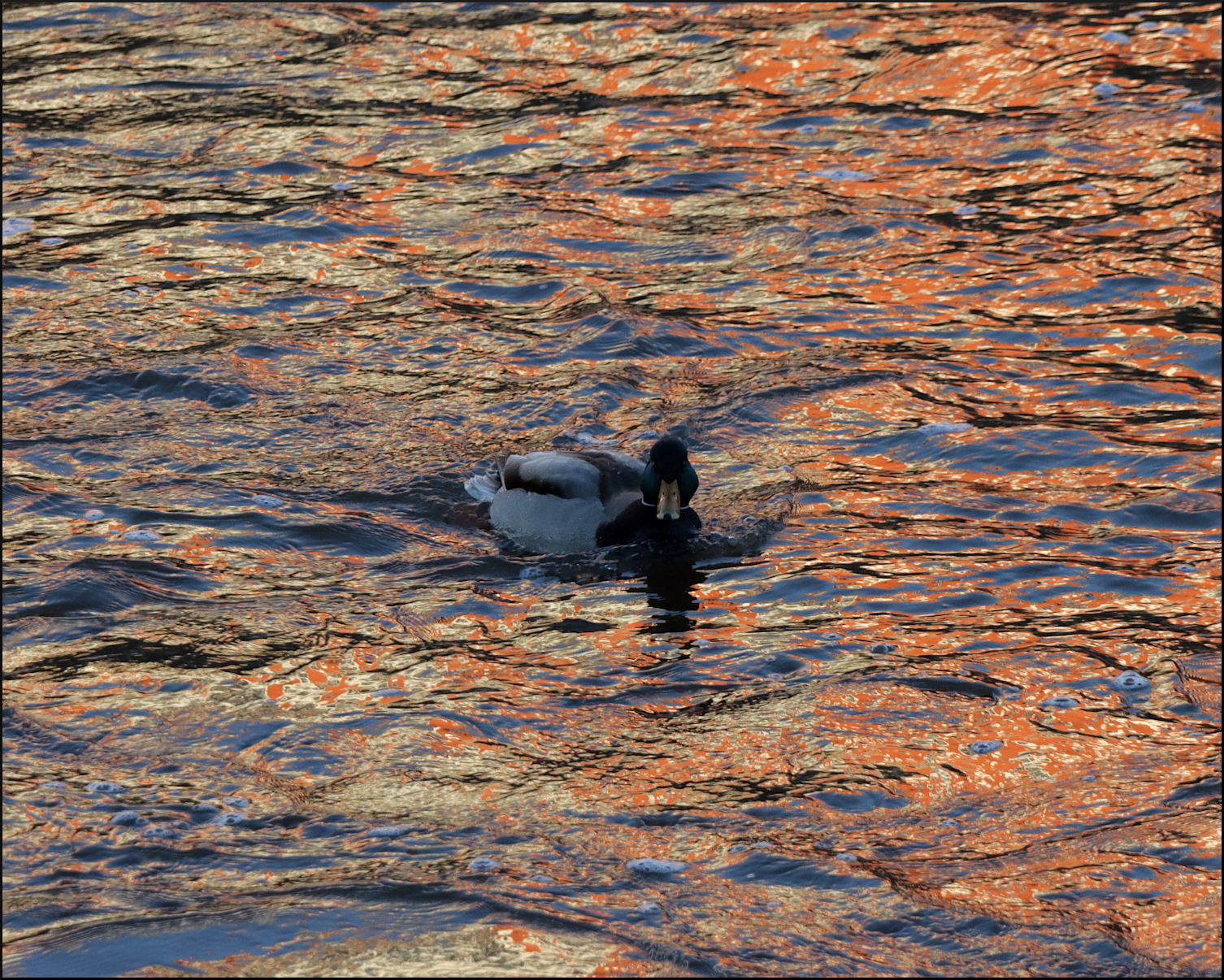 Väldigt vackert sken i bilderna. Dessa stackars änder flyter omkring i vår å och tar sats så fort de ser en människa närma sig. Jag misstänker att hungern sätter sina spår och visst får åtminstone jag lite dåligt samvete när jag inte har någon mat att erbjuda.
