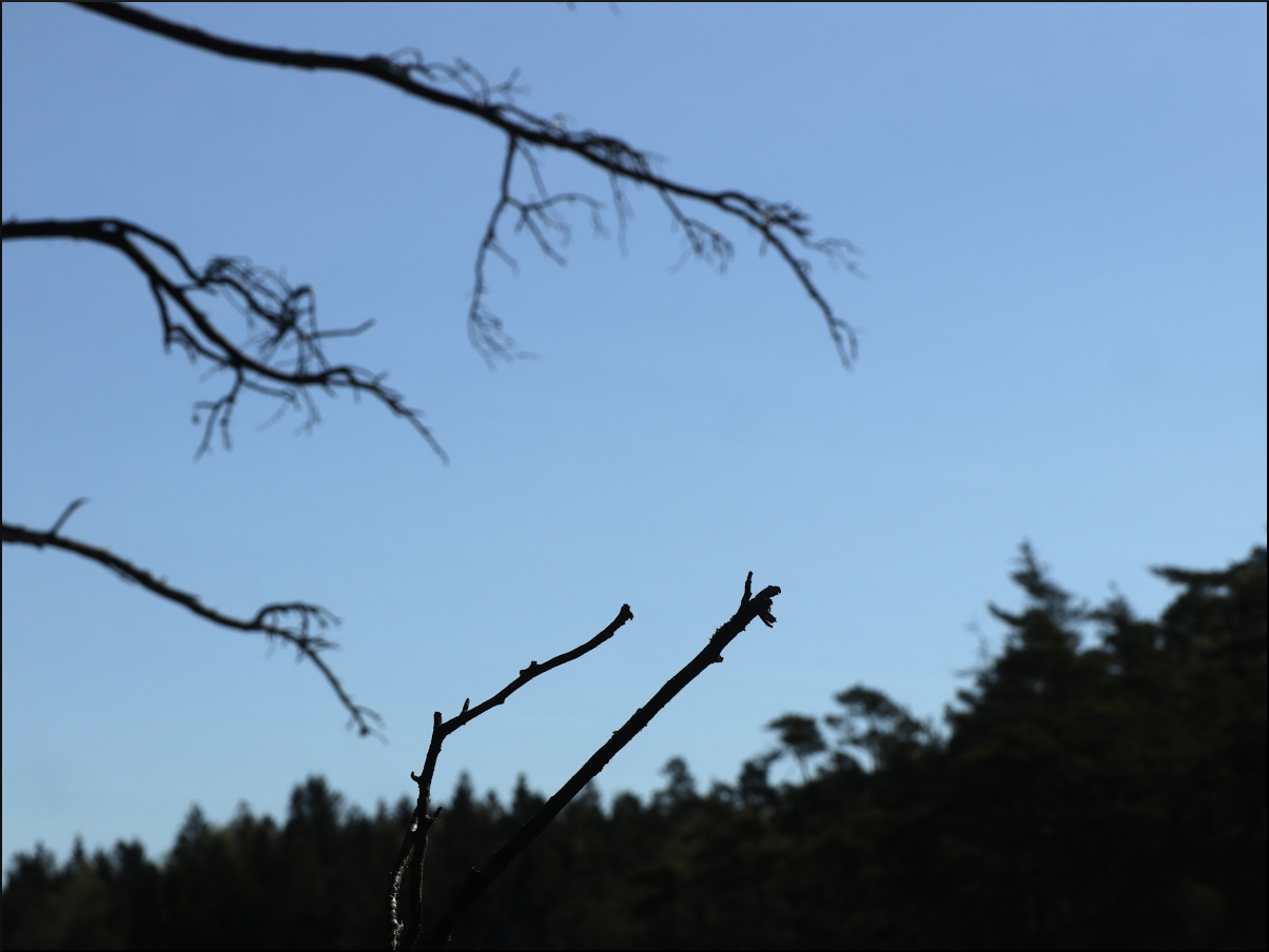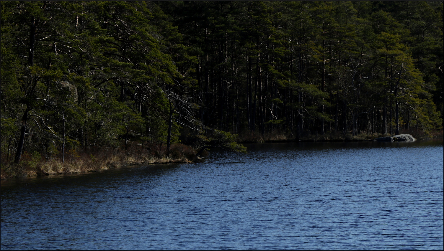 I strandmossen och på berget kämpar träd, kanske ännu en vinter för de mest härdade. Förändringen går långsamt. Först några fina grenar som släpper taget, sedan grövre och till sist lägger sig stammen ner i vattnet. Omsluts och börjar ett nytt liv som härbärge åt obekanta men tacksamma vattenvarelser. En förvandling eller trollerikonst värt att döpa en tjärn efter.