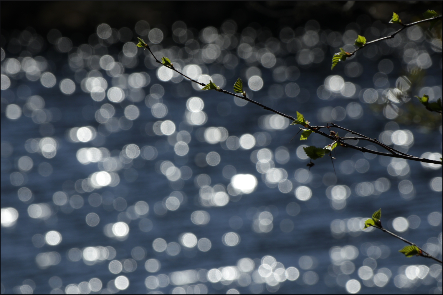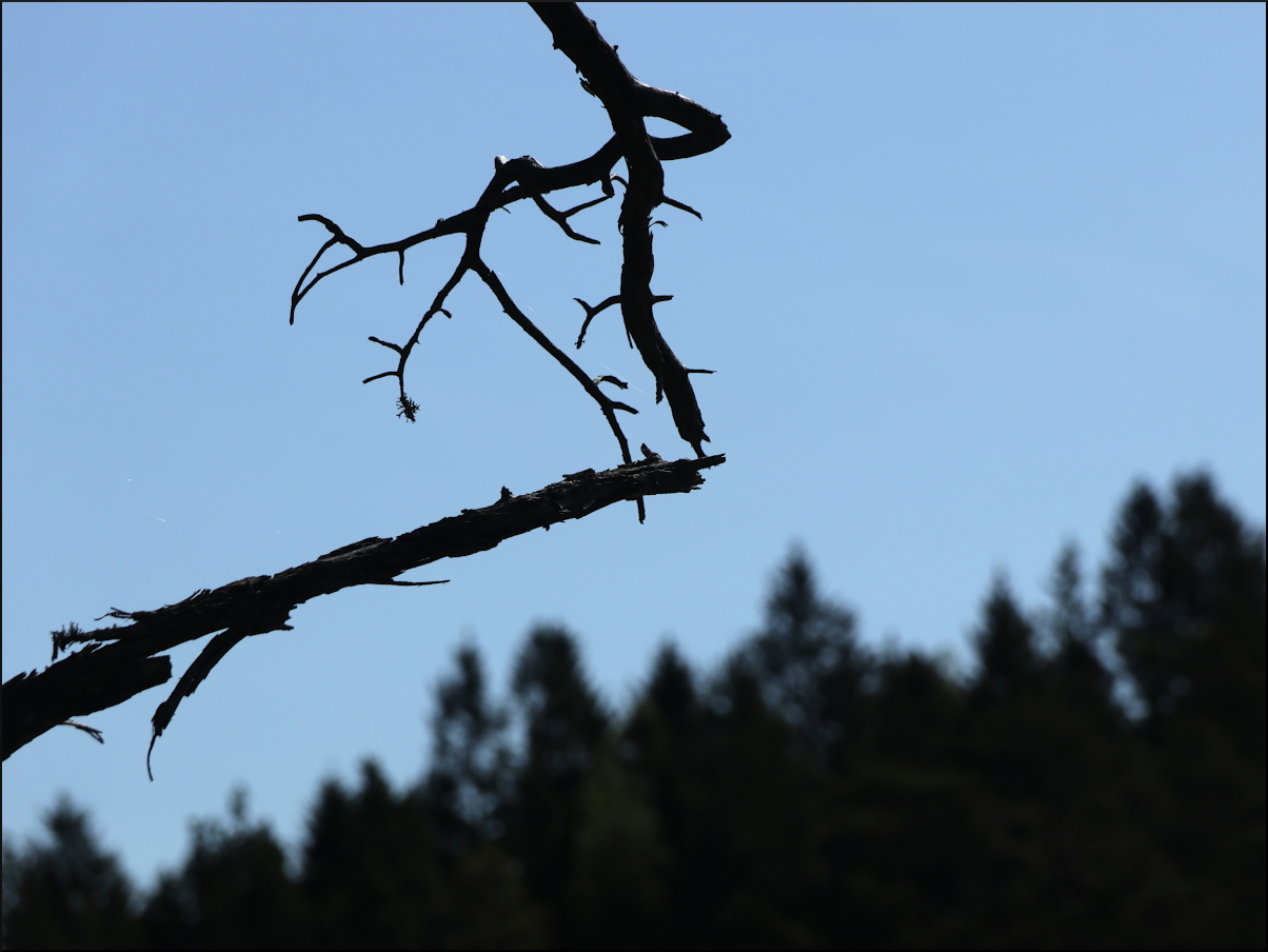 Sjöns vattenytan ändrar hela tiden karaktär beroende på vindens nyckfullhet. Det skarpa motljuset bjuder inte direkt in mig till några större dåd inom fotokonsten. Njuter istället av vattenspelet, kontrasterna mellan de första björklöven och de gamla torrakorna som håller emot vind och sträcker ut armarna till de påpassliga spindlarna.
