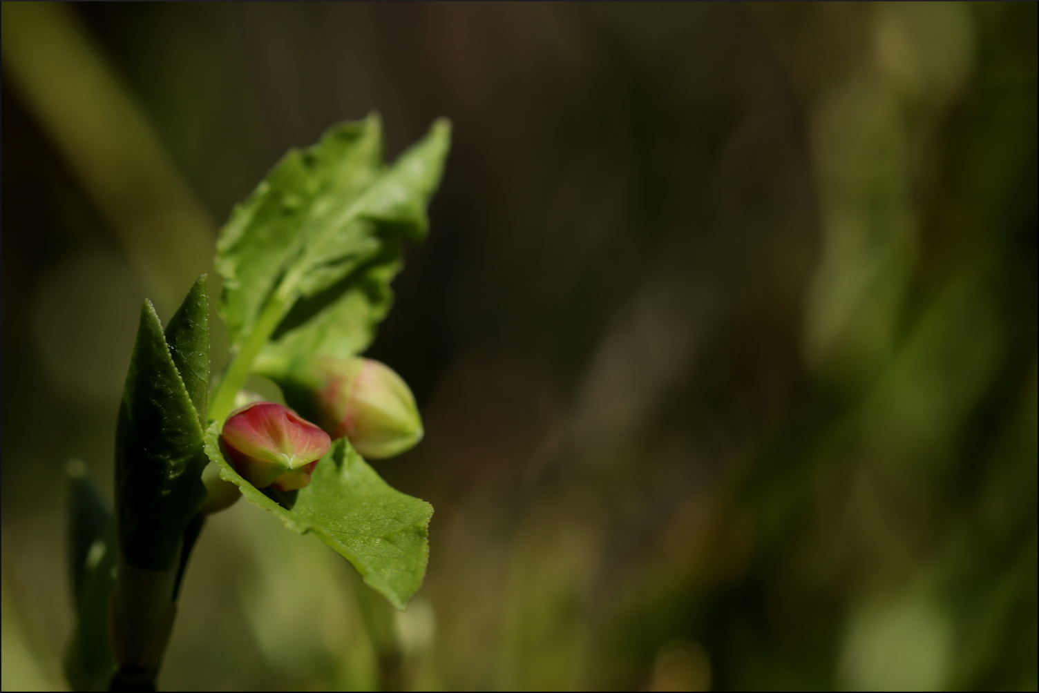Trots den milda vintern, eller kanske tack vare, så har det låga riset fått utstå en omild behandling av traktens större däggdjur och smågnagare. Amputerade grenskott lyser röda men återhämtar sig snabbt när nätterna nu håller sig varmare. Ny årsskott tar över, utökar grenverket och ombildar miniatyrskogen vi kallar för ris. Först ut att smyga fram ur det skyddande bladverket är blåbärsrisets blomknoppar. Fortfarande kniper de ihop sina kronblad, så citronfjärilarna i tallskogen får slita hårt för att klara dagen. Men redan nästa vecka slår de ut i blom för att efter midsommar förse oss och andra skogsvarelser med söta blåbär. En smak som inget odlat kanadensiskt blåbär kan konkurrera med, oavsett storlek.