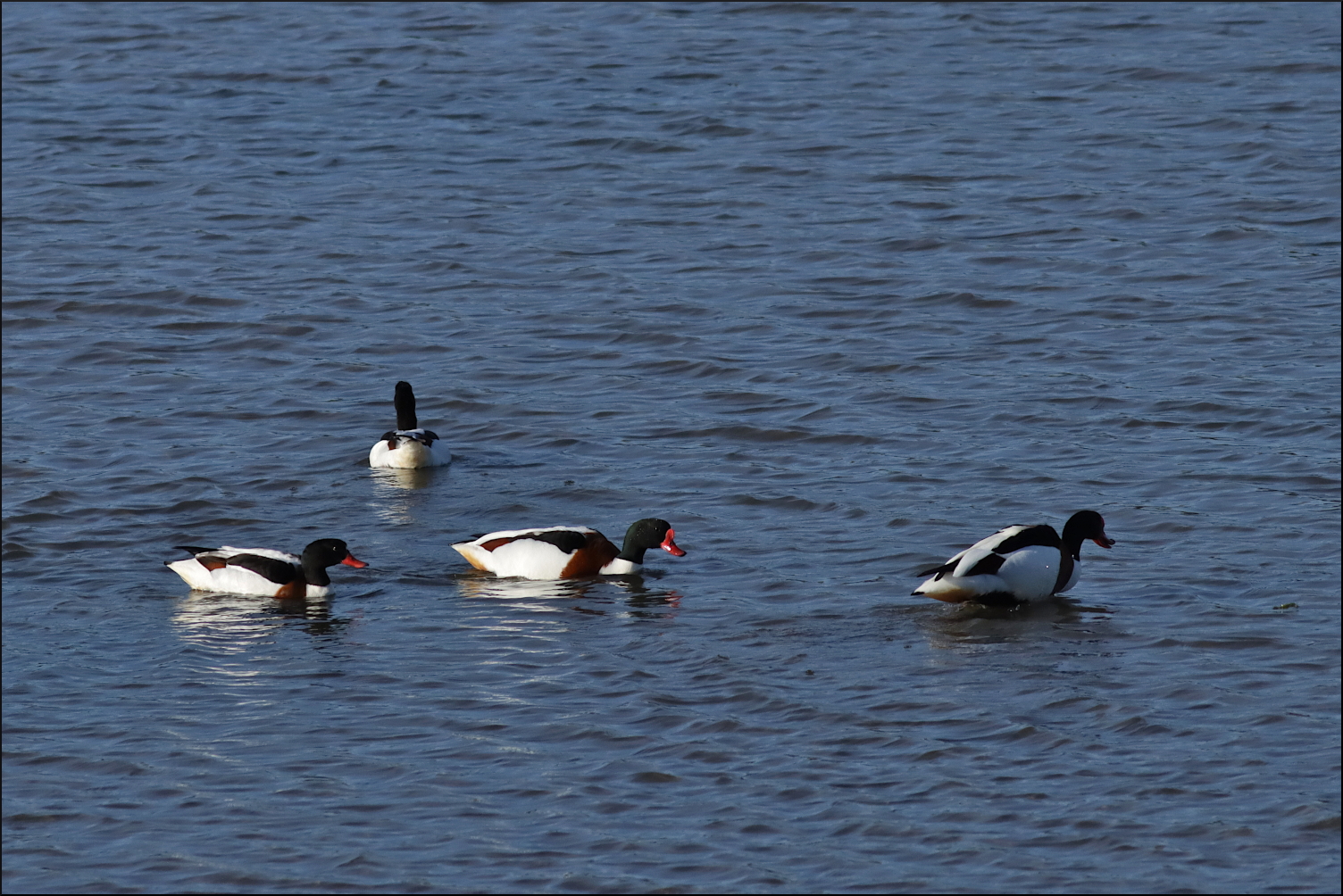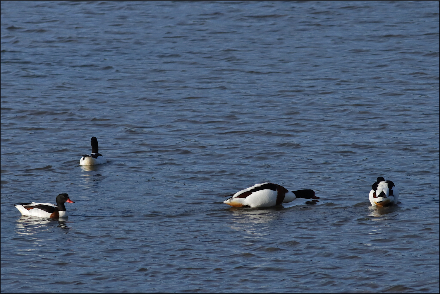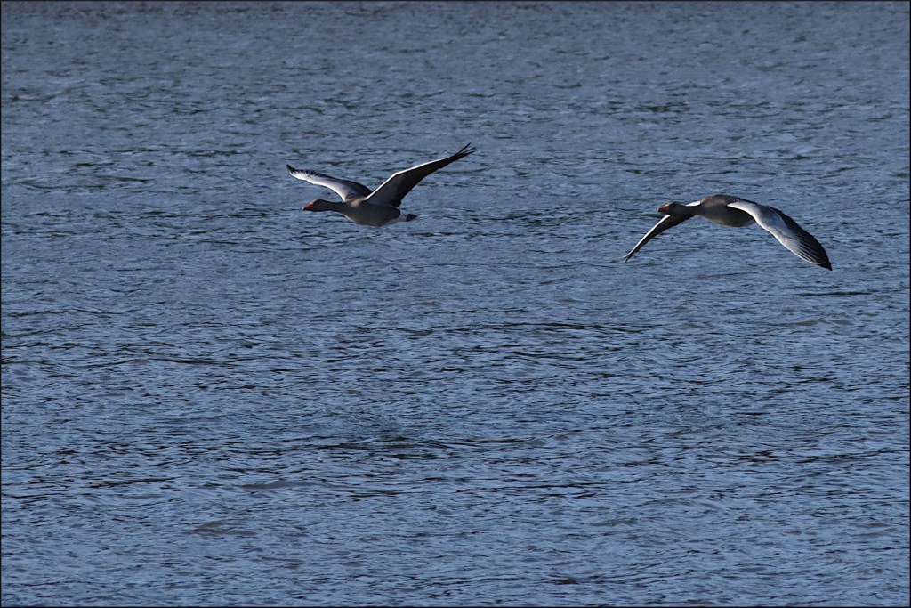 Valborgsmässoafton brukar vara en stökig kväll. Verkar som det smittat av sig lite på fågellivet i viken också. Några unga grågäss gav upp tidigt för ett lugnare ställe att övernatta på. En bidragande orsak var säkert gravänderna som parvis inte kunde hålla sams om bästa matplatsen. Eller så frodades svartsjukan en festkväll som denna, när någon annan hane kom lite för nära fästmön.