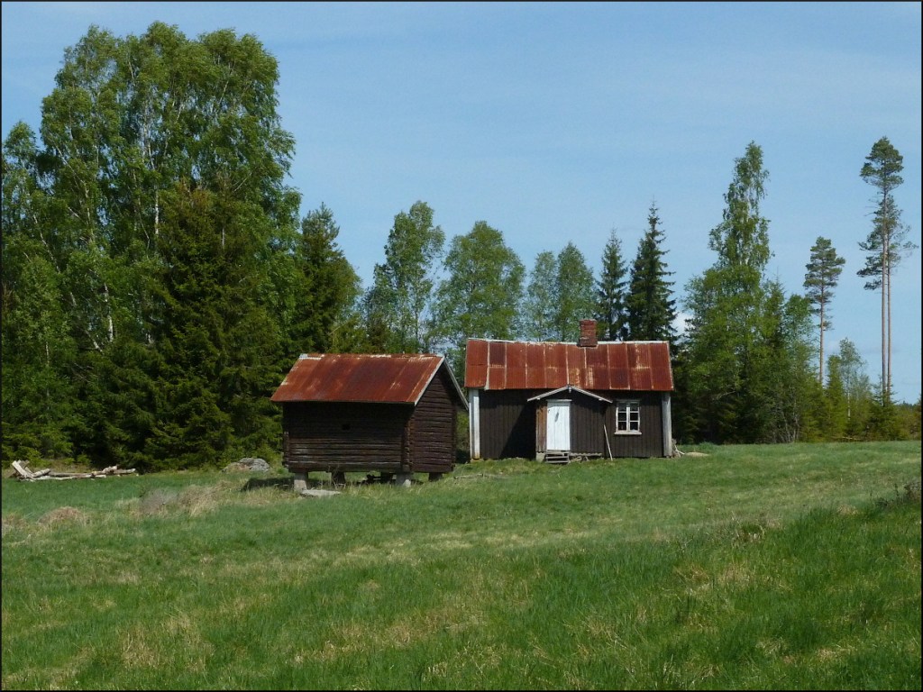 ”Vi pausade vid det gamla torpet, som var fritids/jaktstuga numera. Fortsatte förbi några nyare hus på grusvägen ner mot Sörenga, där vi vek av igen mot NV.”