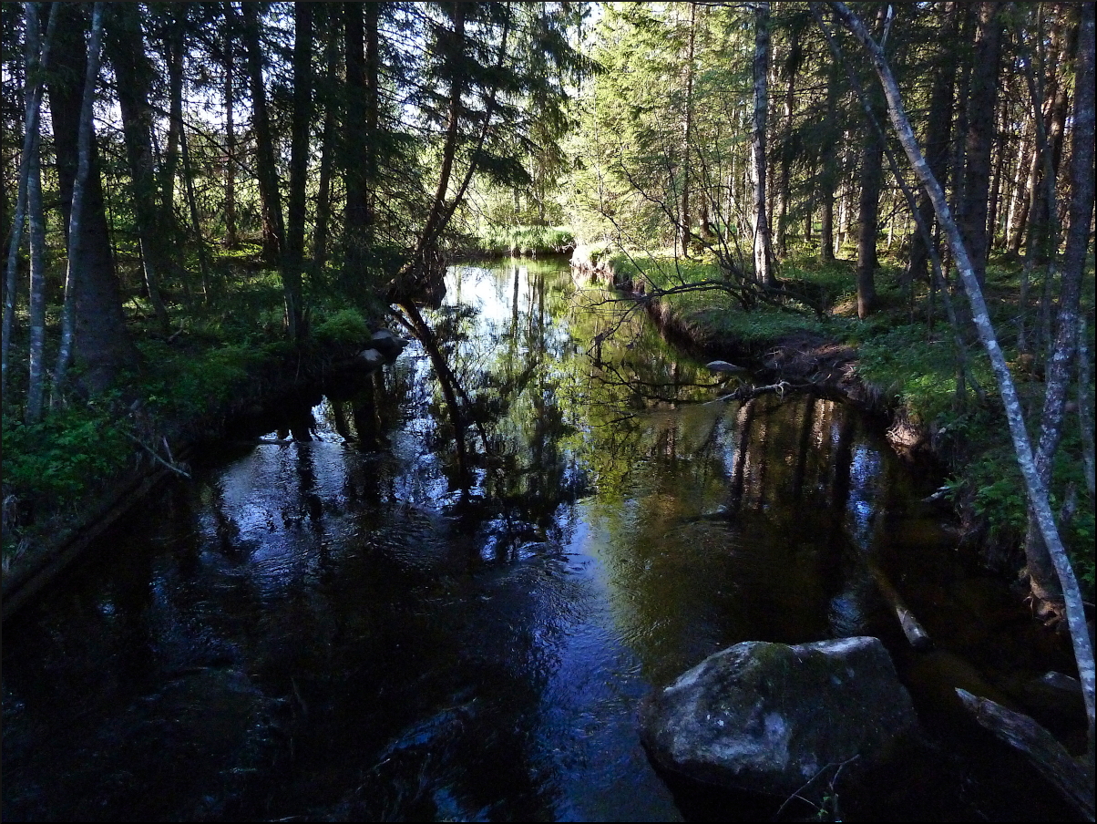 ”Korsade ån Billan vid gränsen. En större å med flodkräfta. Fann en fin rastplats vid bron, men lite för nära bondgården tyckte jag. Vattnet var dessutom ljummet, kom från öppna våtmarker.”