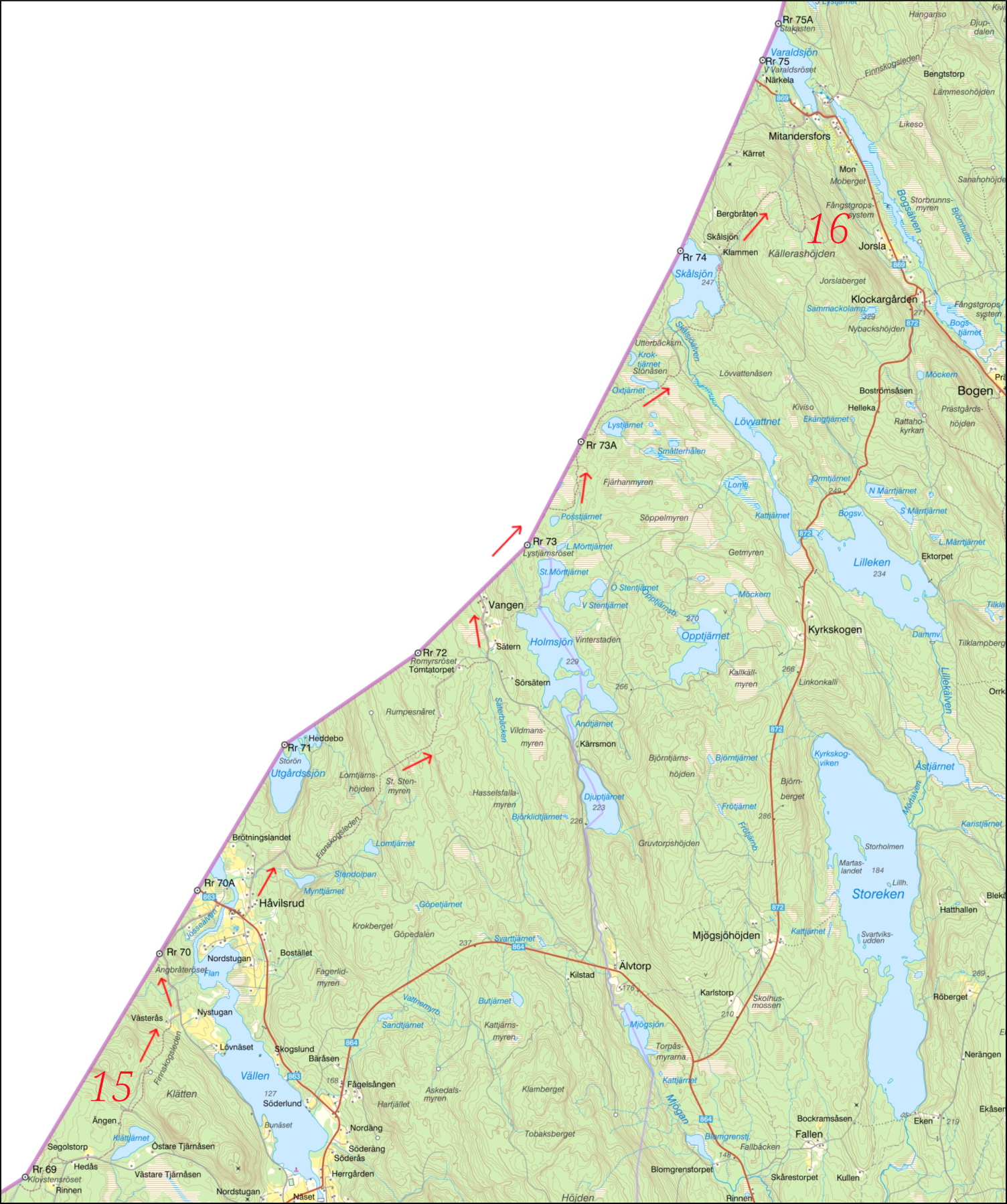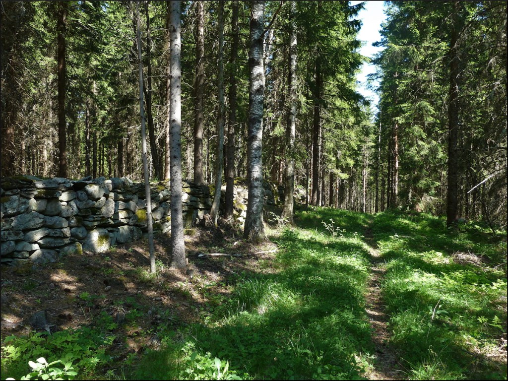 ”Tog av från leden efter Tomtatorpet. En fin gammal bruksväg, bitvis med gamla stenmurar, rann utför mot grusvägen till Vangen. Spridda fritidshus, de flesta med norska ägare syntes det som.”