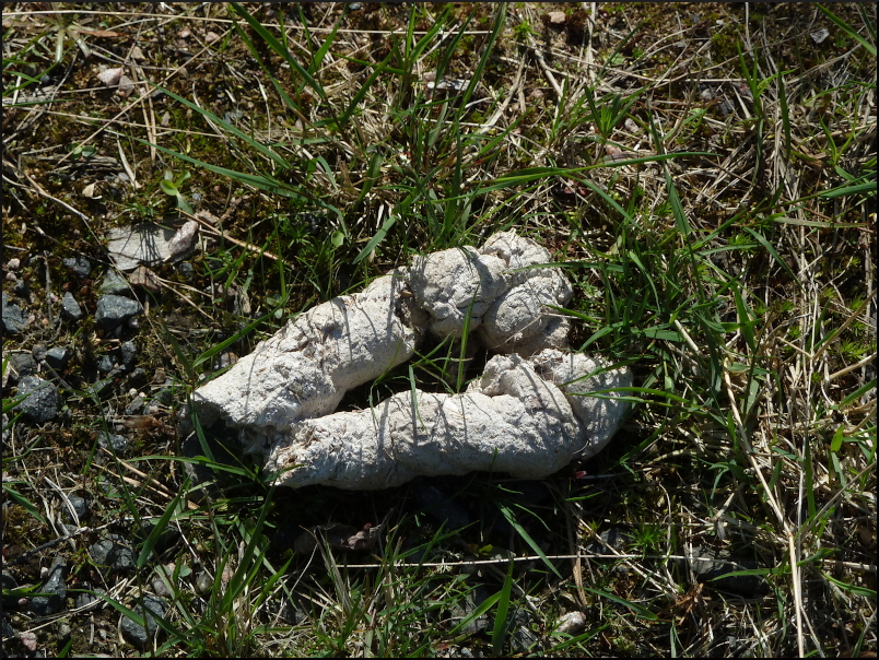Längs vägen; Spillning av varg, som ätit ben, eller?