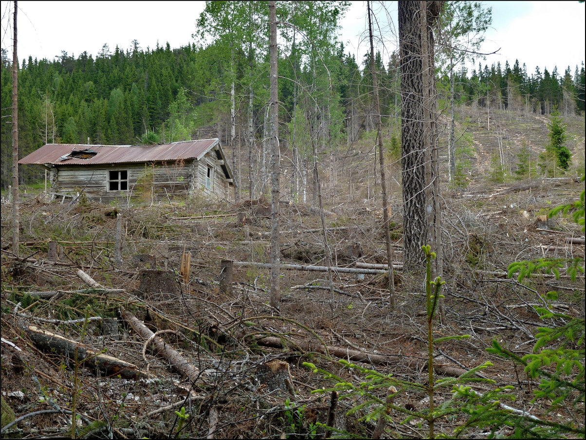 ”Kojan var inte speciellt fräsch. Ostädat, tomma flaskor och burkar. En jättestor träslaf längs med ena kortväggen med några sunkiga madrasser, ett bord och en megastor vedspis mitt i rummet. Innan kvällsmaten måste jag få den råa kylan ur stugans väggar. Elda tidningspapper i rörkröret flera gånger, men utan yxa var det svårt att spänta tändved. Rykte in bra innan det tog sig, men trägen vinner. Temperaturen steg i alla fall till 21 grad C (från 14). Blir att sova med öppet fönster och hoppas på att myggen inte hittar in.”