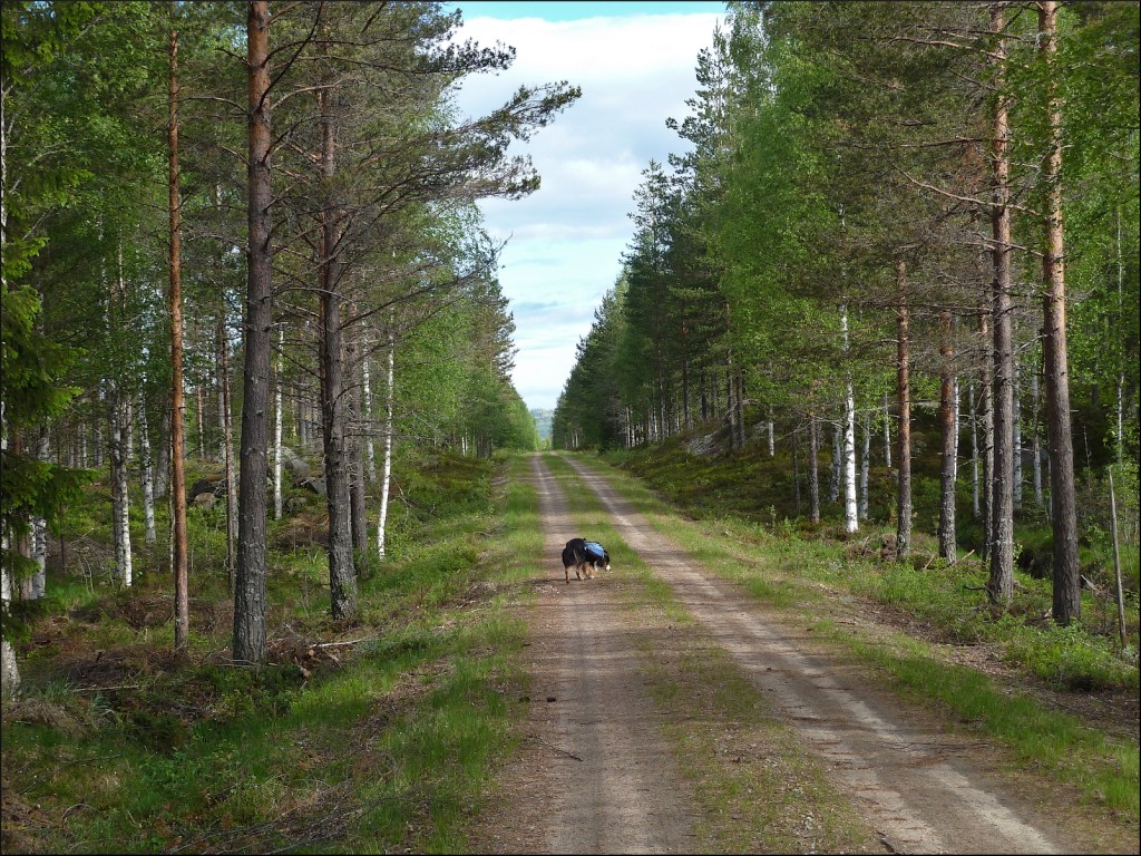 Jag ville försöka undvika för mycket grusvägar, med tanke på mina fötter och Ackes tassar. Jag hade därför fört över Finnskogsleden från en norsk turkarta till mina svenska kartor, där leden saknades. Visade sig inte så lätt.