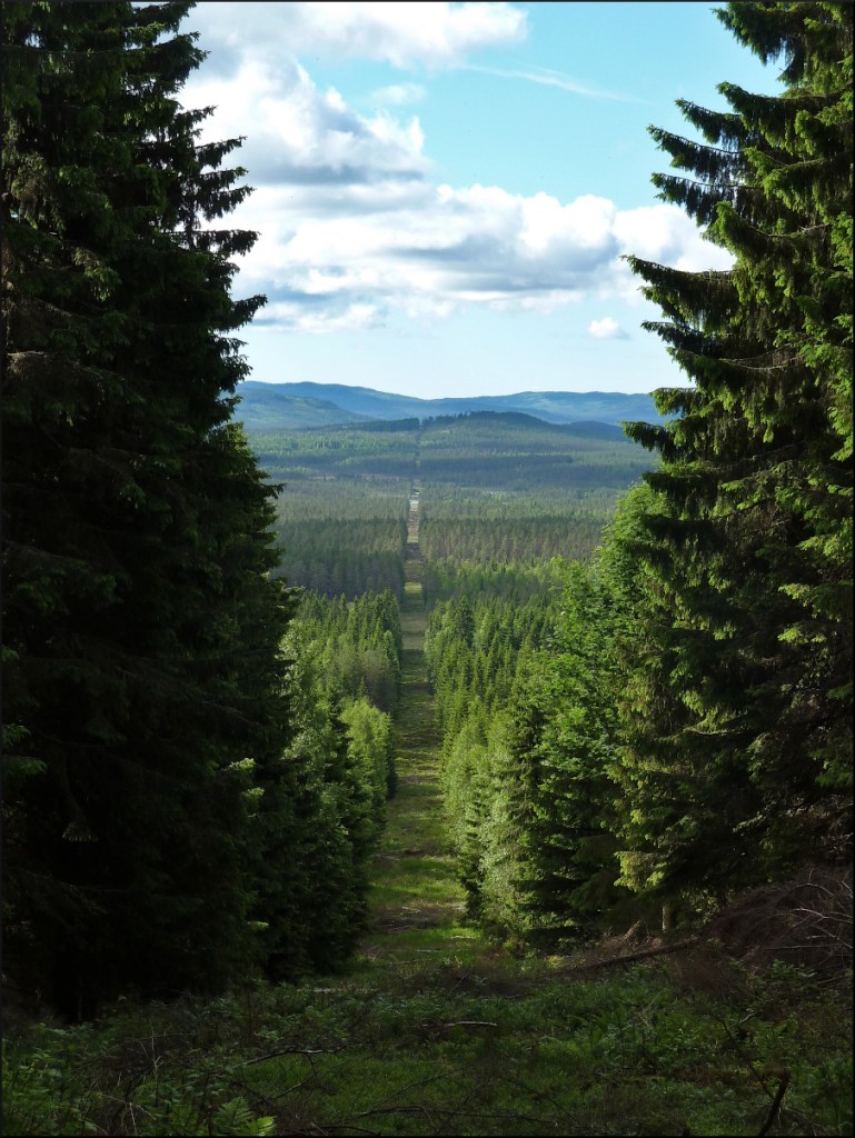 ”Fick passera en skördare och en hel del grova tallar innan jag kom in på vägen mot Norge. Fin gammal körväg med en effektiv gränsspärr, en en meter hög jordvall.”
