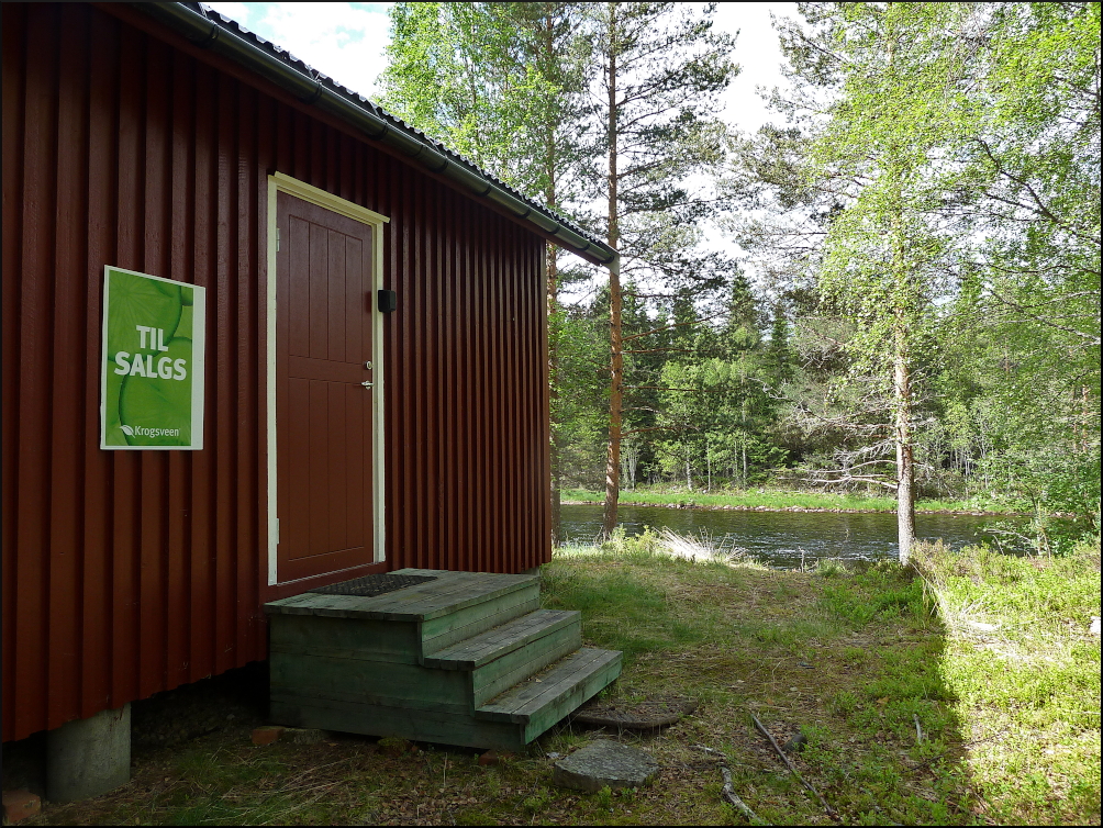 ”Sedan följde en lång härlig utförsbacke tills man korsade en bättre skogsväg och kom till den breda älven Flisa. Kojan var en stuga, välputsad och till salu vid älvkanten.”