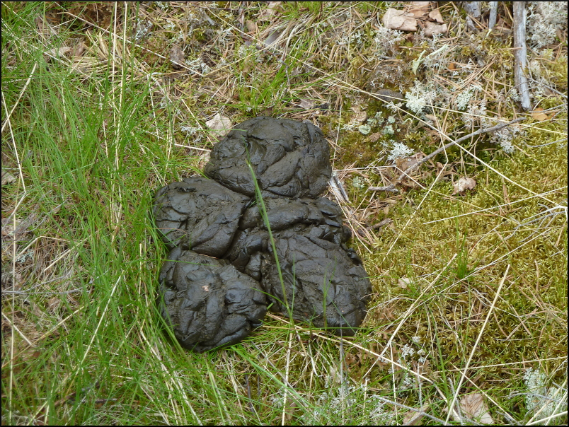 ”Vi skyndade på för den stora utmaningen, nästan en mil på grusväg österut mot Höljes. När vi genade upp på vägen trampade jag nästan i en koblaja, eller troligare färsk björnskit!”