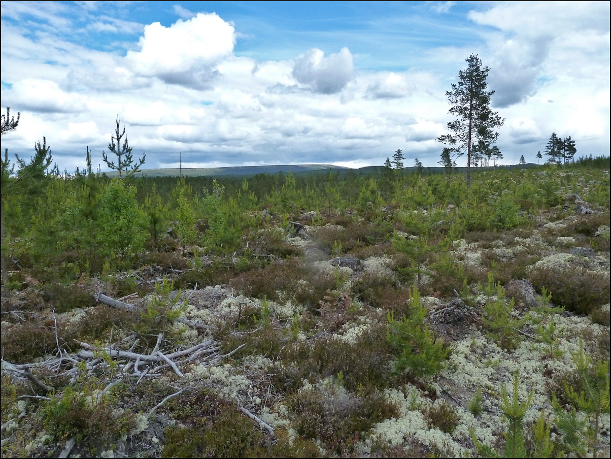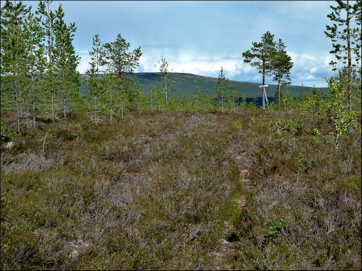 ”Första dagsetappen tog slut på gubben, så det blir lite kortfattat i tältet vid 22-tiden. Starta norrut från sportbutiken vid 3-tiden. Fin stig på öppen tallhed, i början cykelled, sedan gula träpinnar på stolpar fram till grusvägen.”