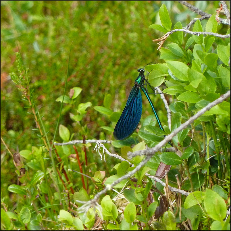 ”Förvänta mig björn bakom varje sten, men bara rävspillning och en fantastisk vacker slända, stor med mörka blågröna dubbla vingpar.”