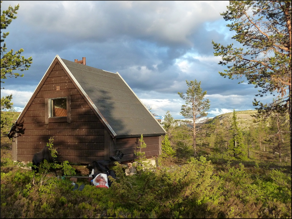 ”Tvingade i mig två mackor och blåbärssoppa i kvällningen väl framme, men höll nästan på att kräkas. Kylde på, så det blev några kråkor med pennan i tältet, med en serenad av småspov och ljungpipare utanför.”