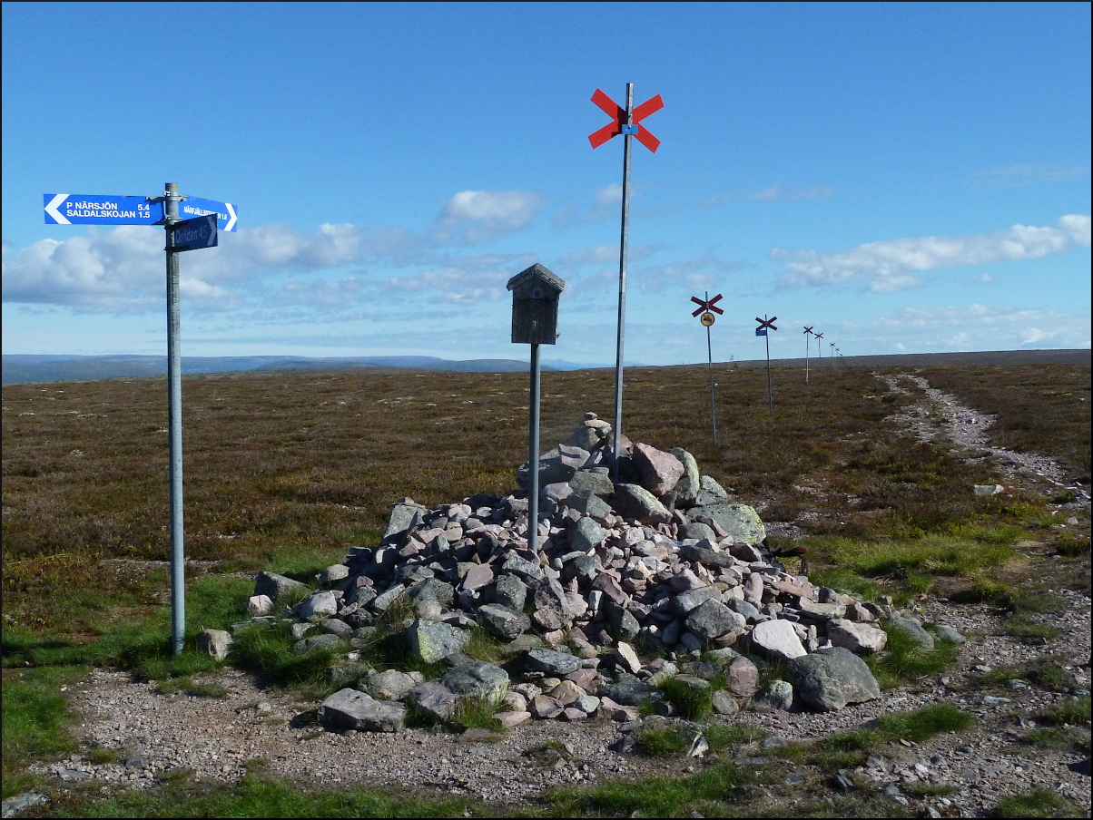 ”Fint att gå över fjället ner till Närfjällsstugan, som ligger längs skoterleden. Därav stugans storlek, relativt ny med hjälptelefon och allt. Dock inget vatten förrutom en liten myrgöl och några snölegor österom i ravinen.”